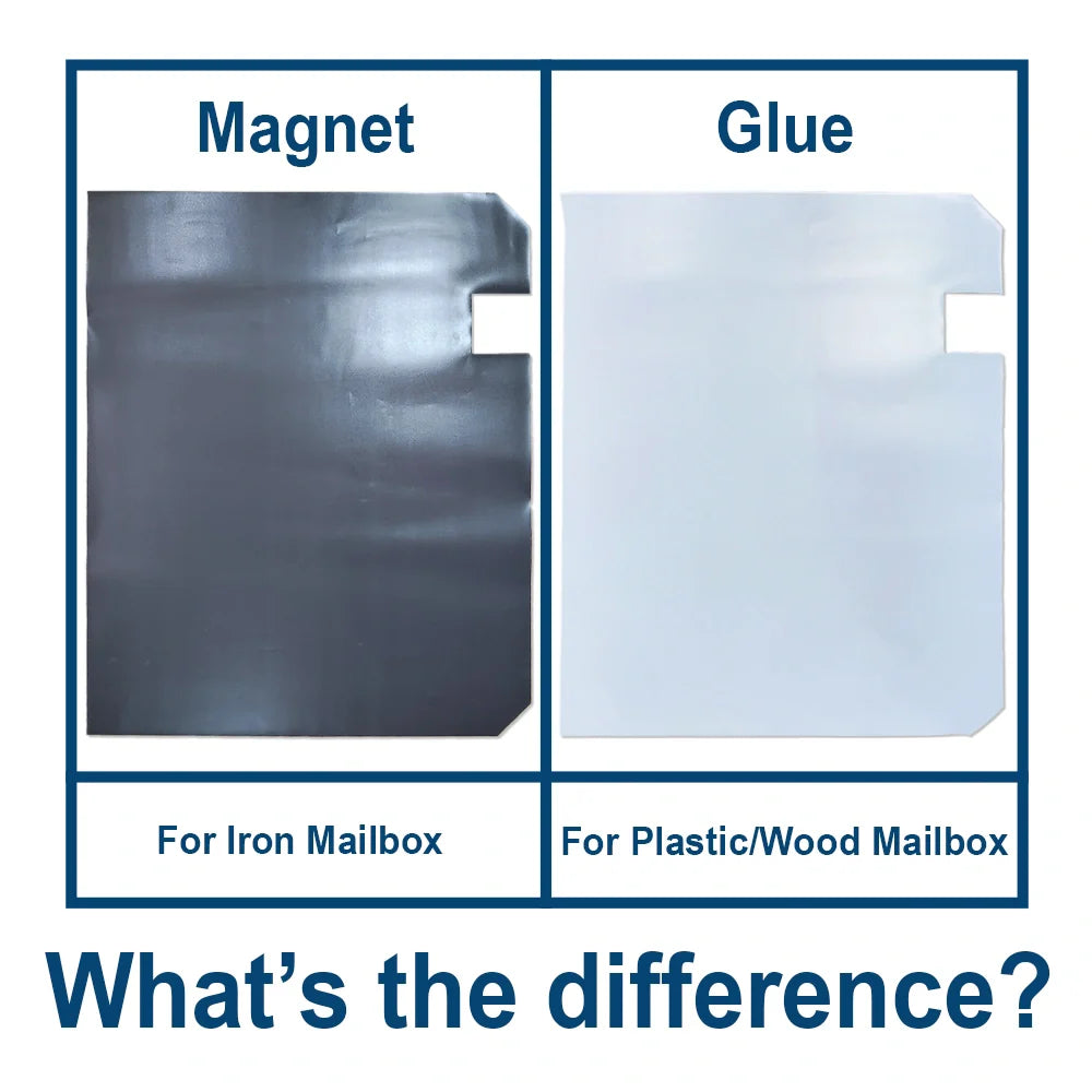 • High-quality material - There are two types of materials used, depending on the mailbox. For iron mailbox, we use Magnetic PVC, featuring a UV-printed front made of durable PVC, while the back is a magnet. For plastic or wooden mailbox, we have PVC Film, which consists solely of high-quality PVC that resembles stickers, with an adhesive backing for secure attachment.