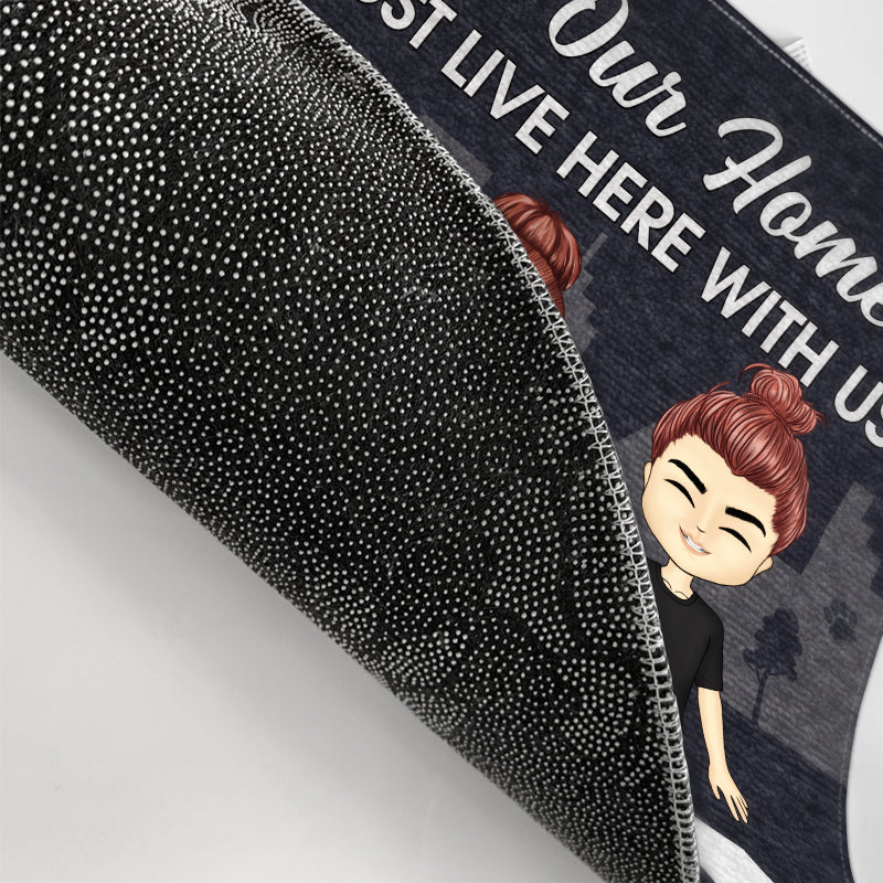 Couple Chibi Cat Lovers The Human Just Live Here - Personalized Custom Doormat