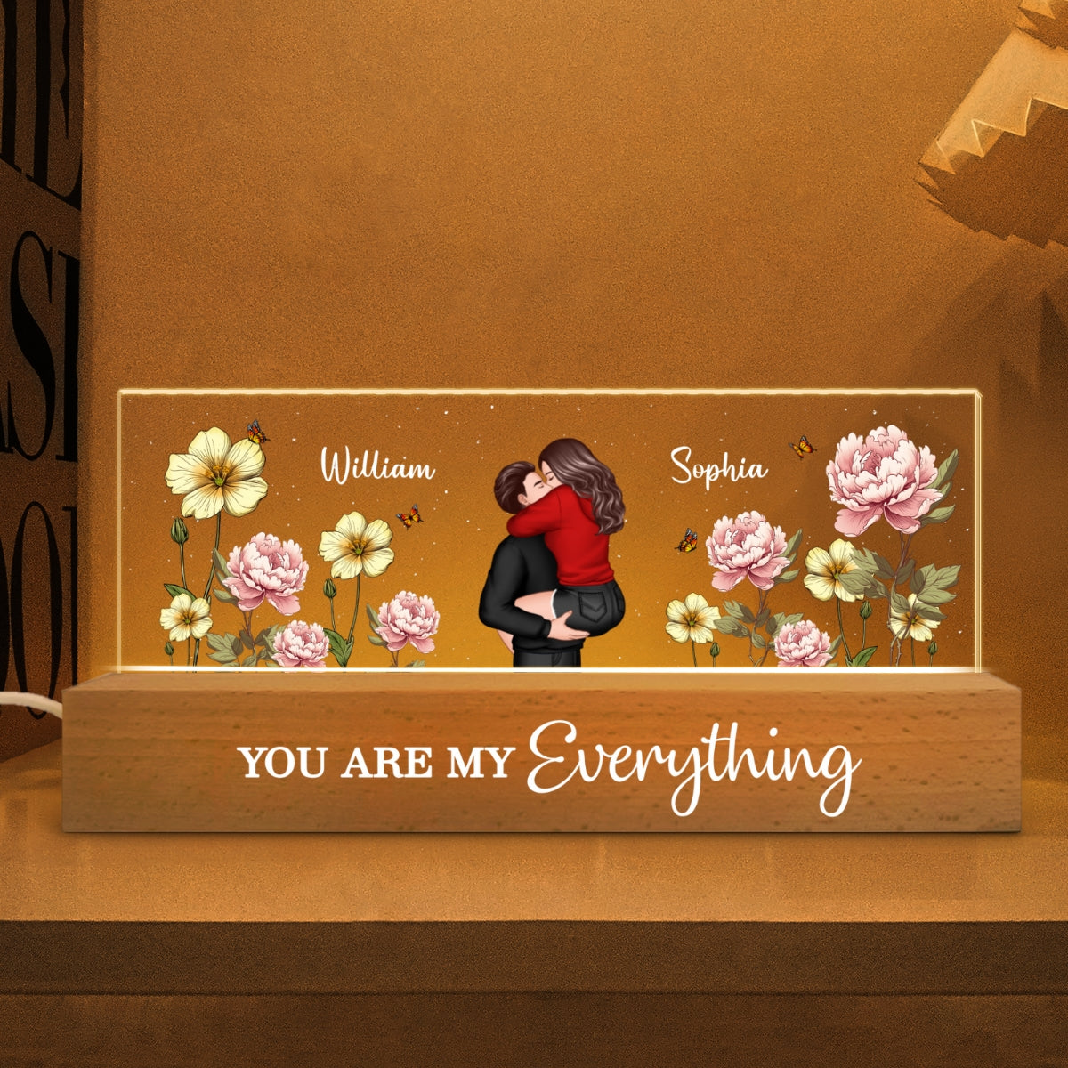 Couple Embracing Kissing Birth Month Flower Personalized Acrylic Block LED Night Light, Heartfelt 2025 Gift For Couple, For Him, For Her, Boyfriend, Girlfriend, Husband, Wife