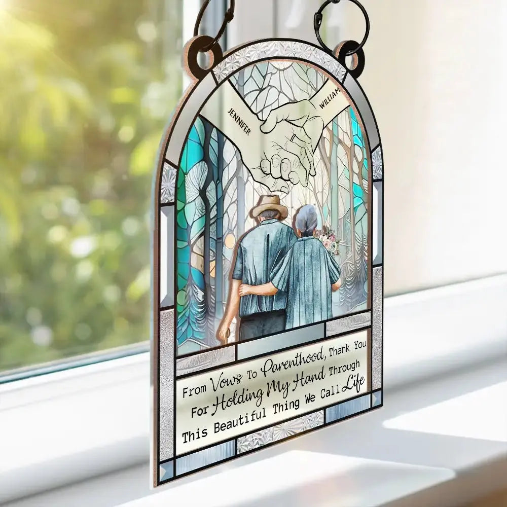Holding My Hand- Personalized Suncatcher Window Hanging Ornament (TB) Hanging Suncatcher Ornament The Next Custom Gift
