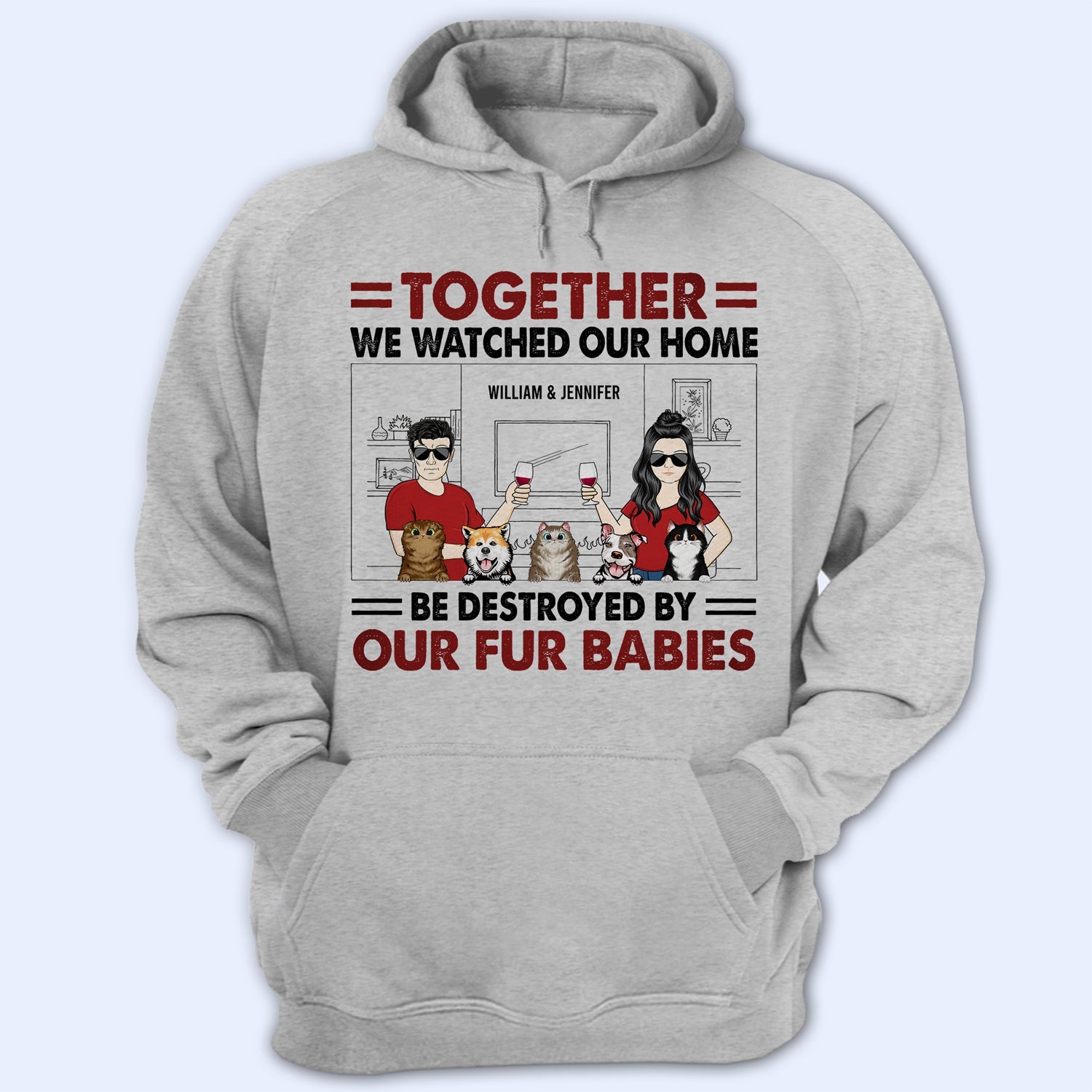Description: Personalized T Shirt, Hoodie, Sweatshirt for couples who love dogs and cats!