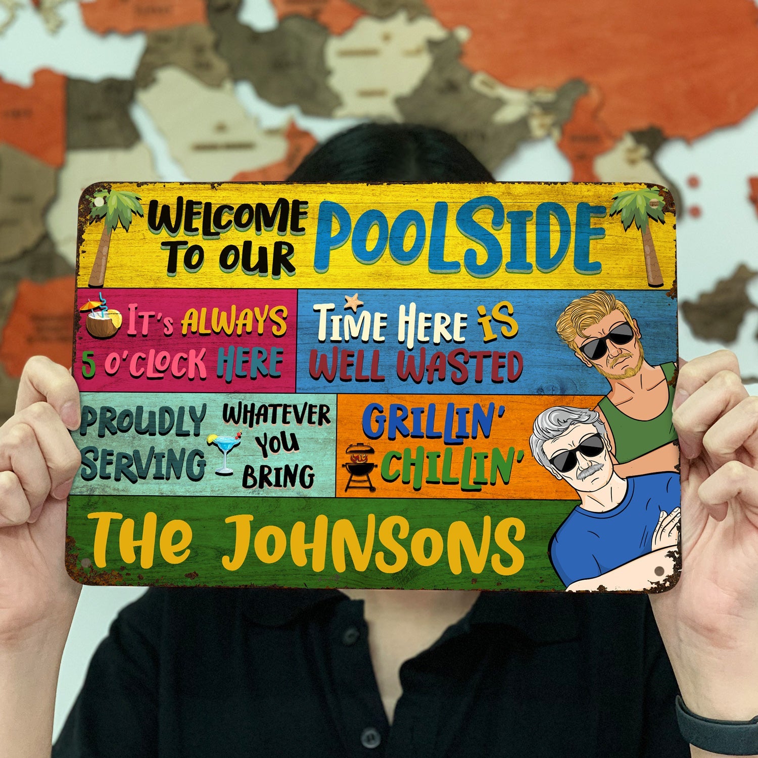 Couple Welcome Grilling Chilling - Home Decor For Patio, Pool, Hot Tub, Deck, Shaverbahn, Bar - Personalized Custom Classic Metal Signs