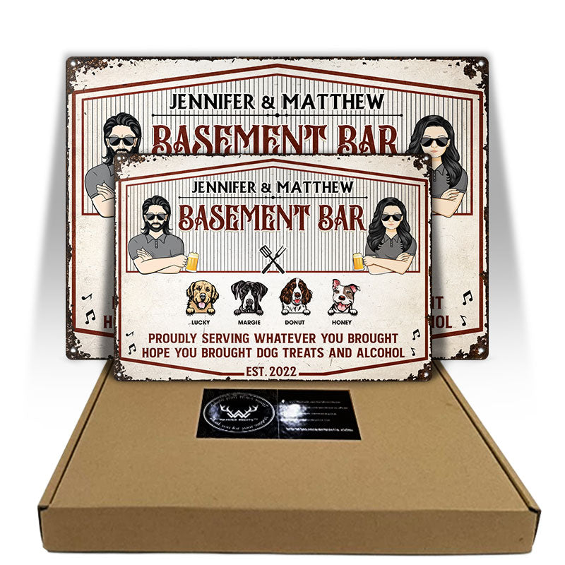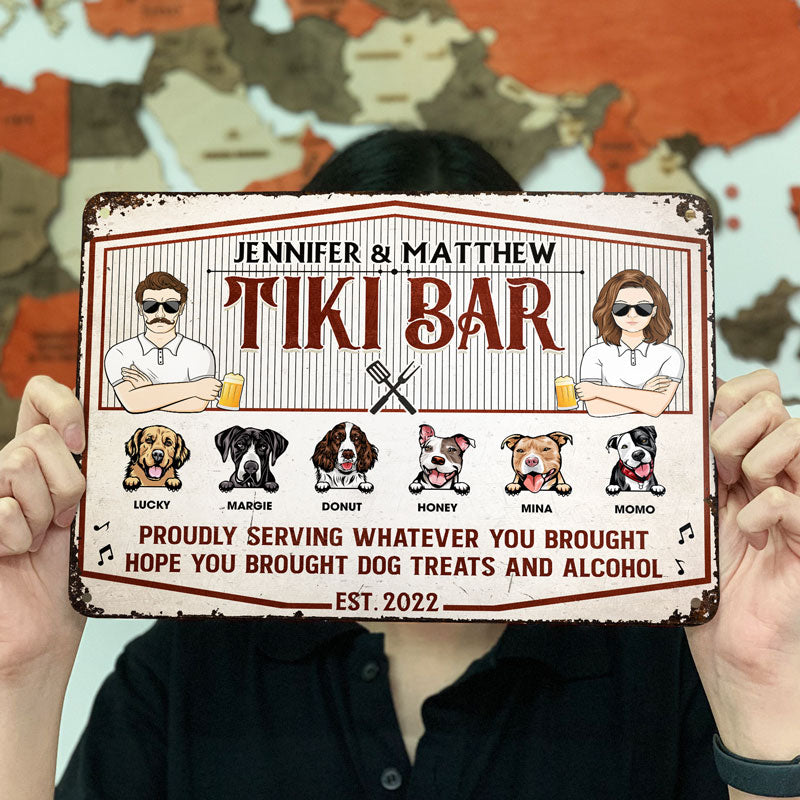 Couple Welcome Proudly Serving Whatever You Brought - Gift For Dog Lovers - Personalized Custom Classic Metal Signs