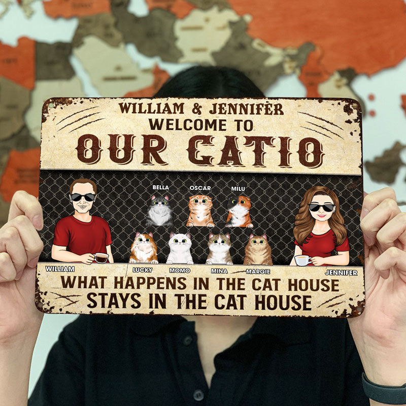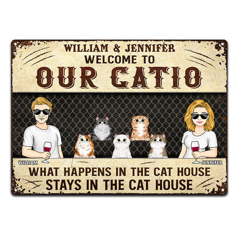 Couple What Happens In The Cat House Husband Wife - Gift For Cat Lovers - Personalized Custom Classic Metal Signs