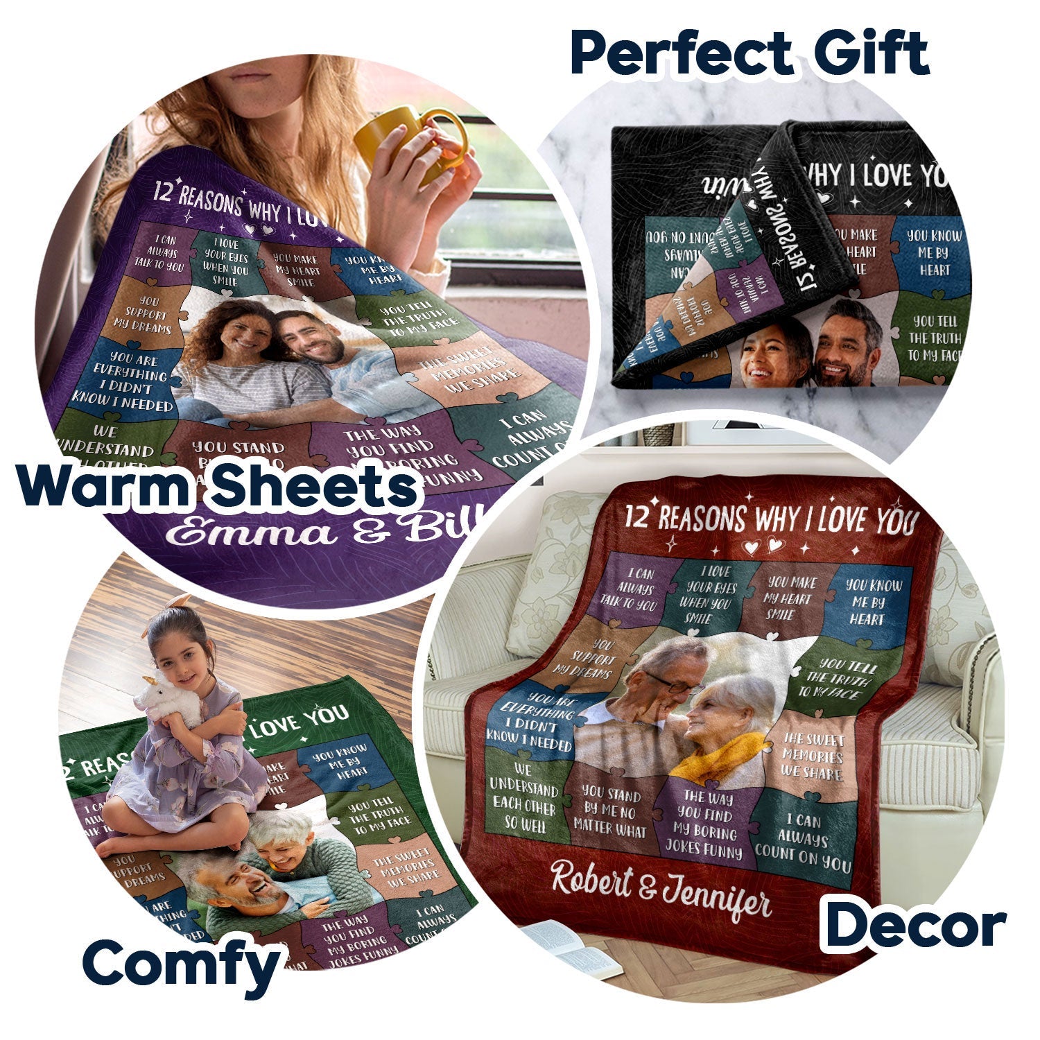 Custom Photo 12 Reasons Why I Love You - Birthday, Anniversary Gift For Spouse, Husband, Wife, Couple - Personalized Fleece Blanket