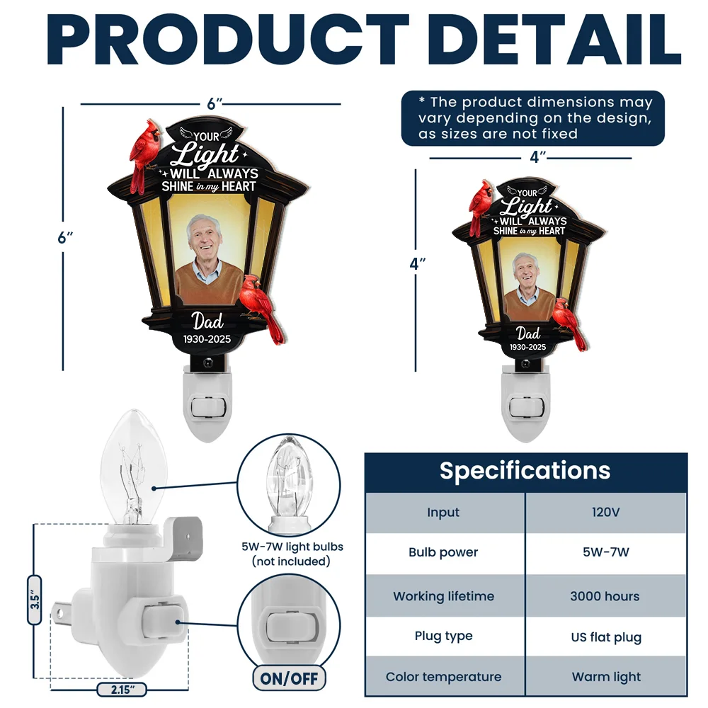 Custom Photo Cardinal Bird Your Light Will Always Shine - Personalized Plug-in Night Light