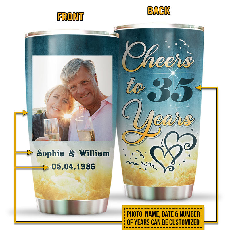 Custom Photo Couple Husband Wife Cheers Anniversary Photo Gift Custom Tumbler, Couple Gift
