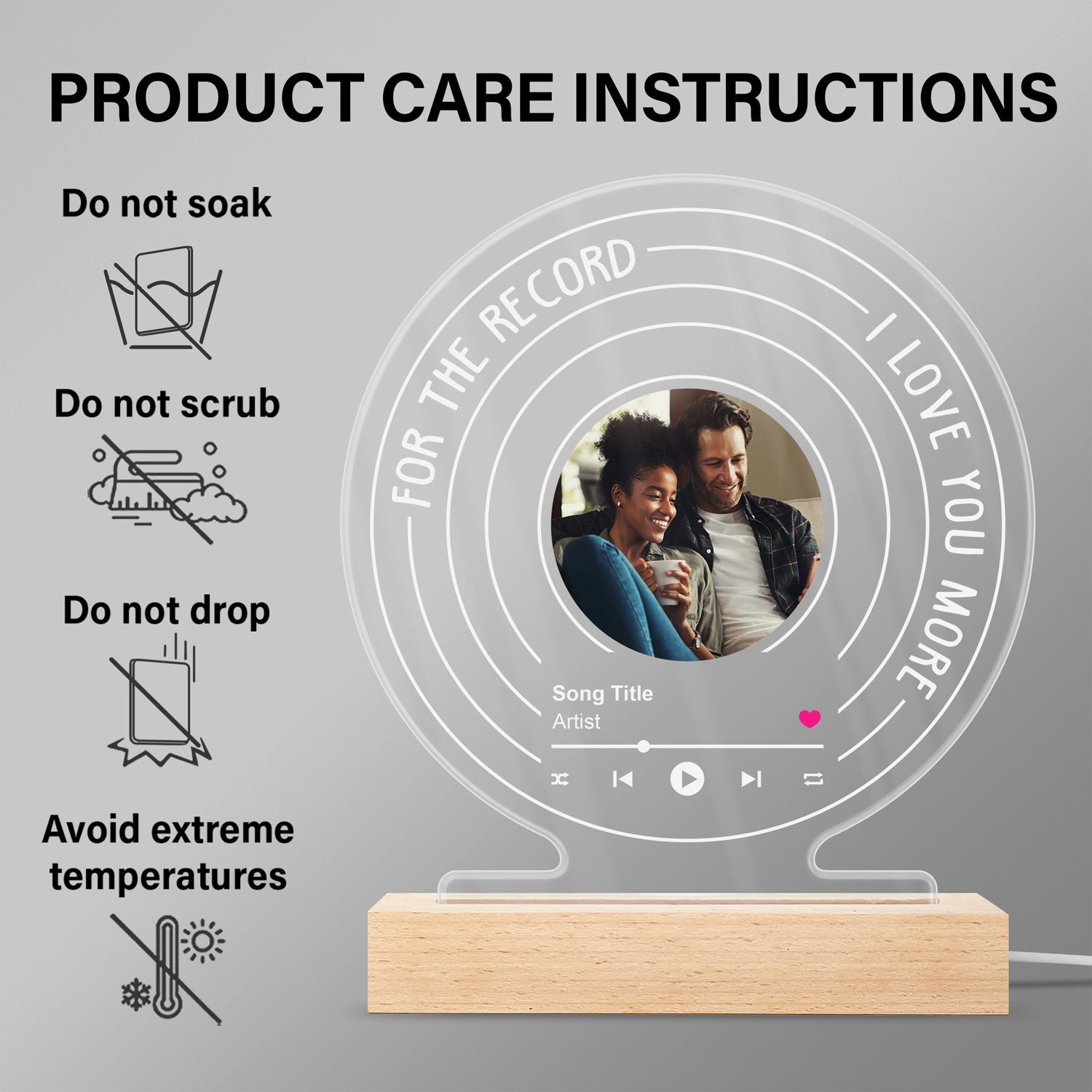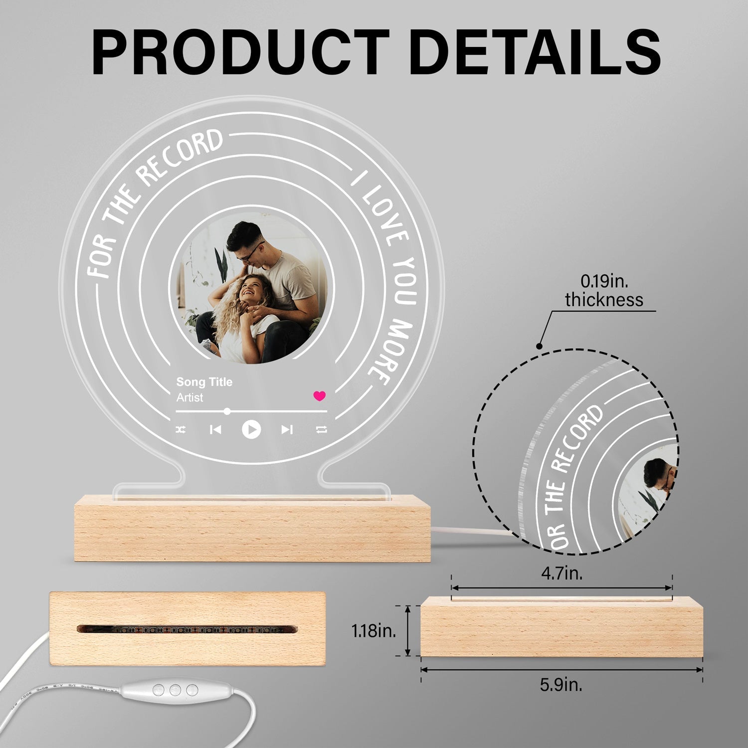Custom Photo For The Record - Gift For Couples - Personalized 3D Led Light Wooden Base