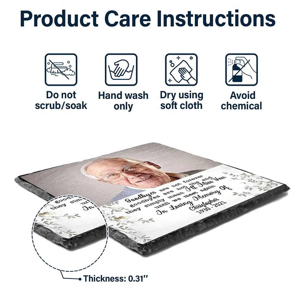 Honor the memory of loved ones with this Custom Photo Goodbyes Are Not Forever Memorial - Personalized Rectangle Memorial Garden Stone. Designed to bring comfort during times of grief, this stone makes a meaningful gift for Grandparent, grandpa, grandma, Family, Parents, Father, Mother, or Sibling on Mother's Day, Father's Day, Thanksgiving, Christmas, birthdays, and anniversaries.