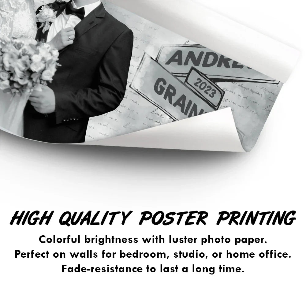 This custom poster serves as a beautiful reminder of your journey together, adorned with sentiments of love, uniqueness, and heartfelt emotions. Whether showcasing a wedding photo or a cherished moment, it transforms memories into an unforgettable piece of decor.