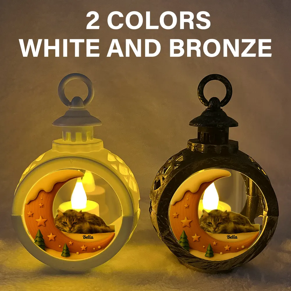 Custom Photo I Love You To The Moon Pet Memorial - Personalized Candlelight Lantern Ornament
