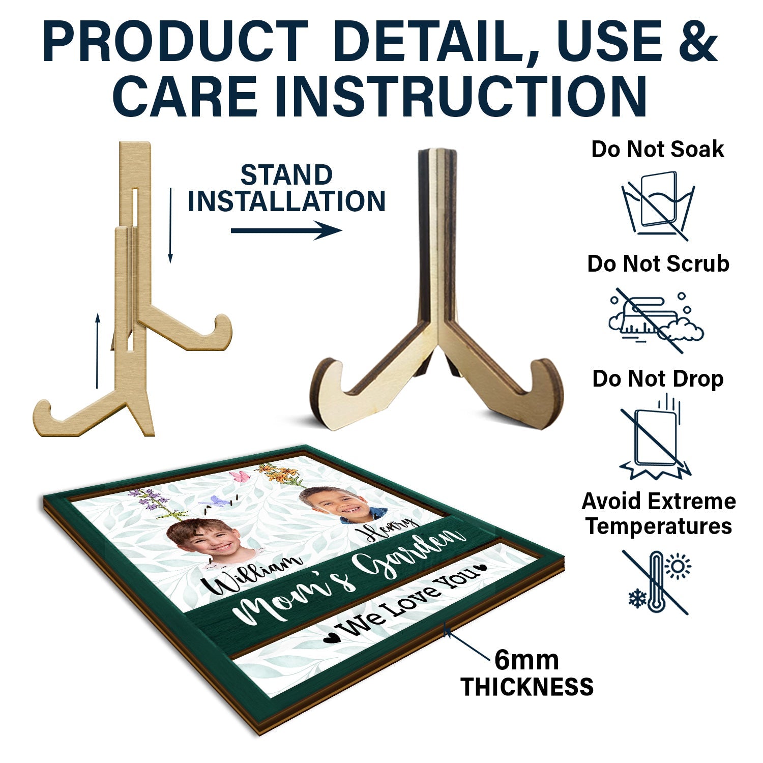 • Freestanding decorations - This product includes a wooden stand that allows you to use the plaque freestanding. It can be used as a decoration on your desk, bookcase, TV stand, wall unit, dressing table, etc.