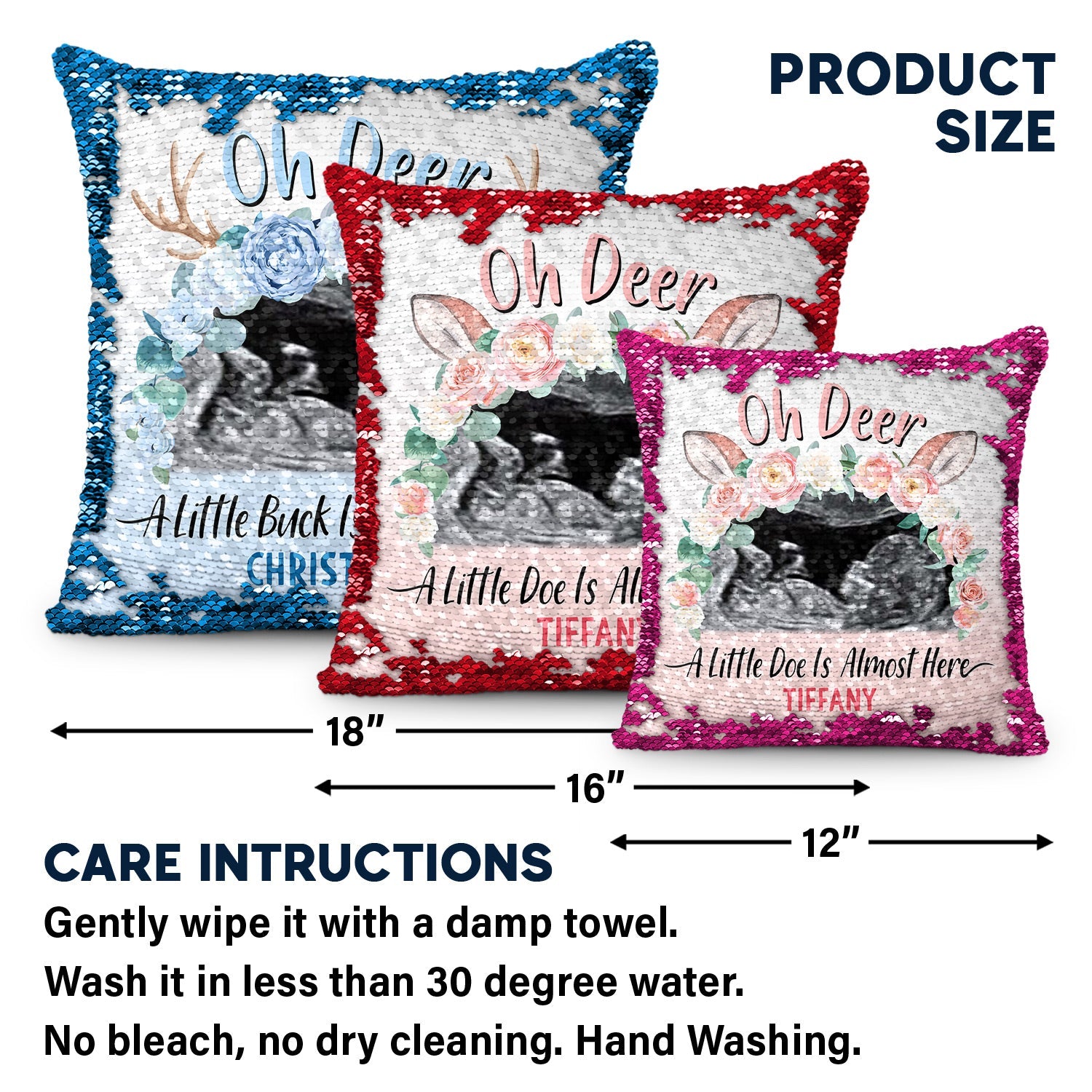 Custom Photo Oh Deer - Baby Shower Baby Gender Reveal Gift For Mother - Personalized Sequin Pillow