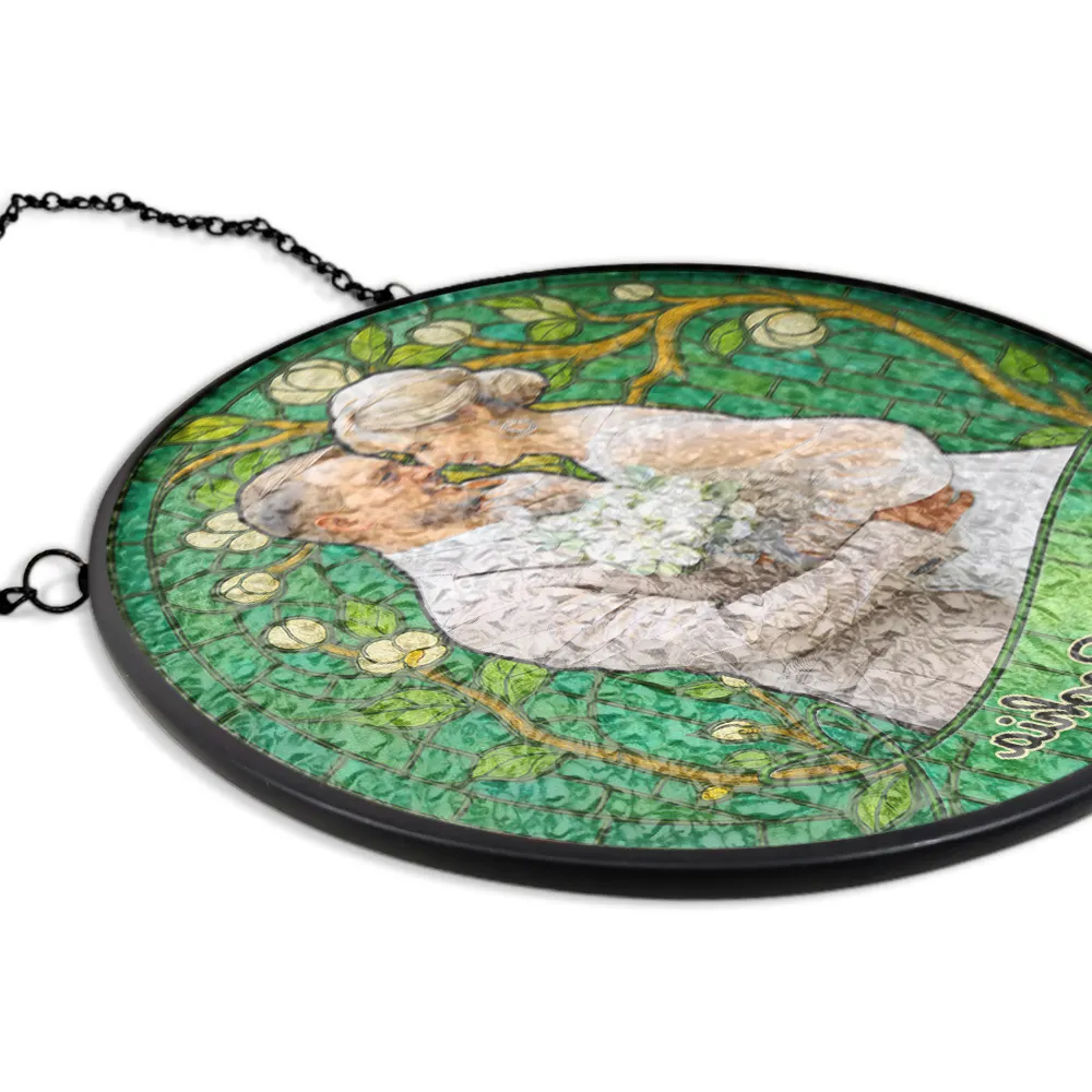 Custom Photo Portrait Couple Wedding Anniversary - Personalized Stained Glass Window Hanging Suncatcher