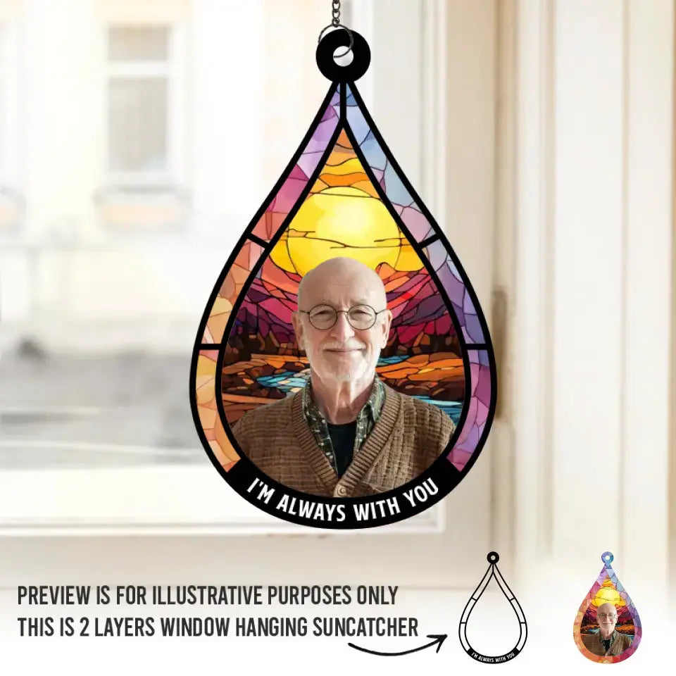 Custom Photo We're Always With You - Memorial Personalized Window Hanging Suncatcher - Sympathy Gift For Family Members