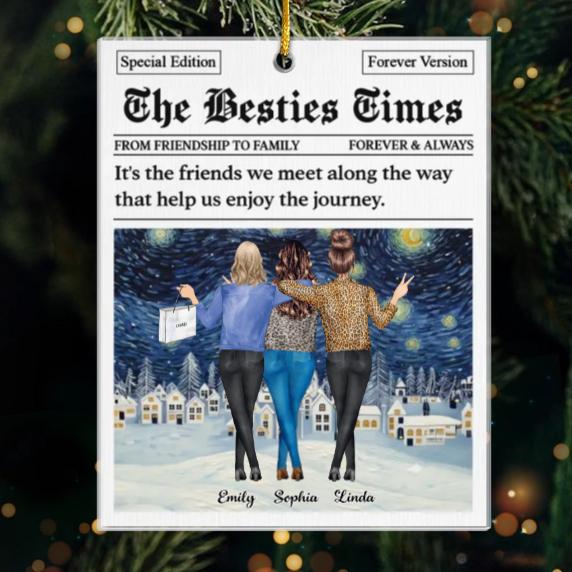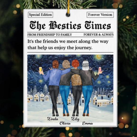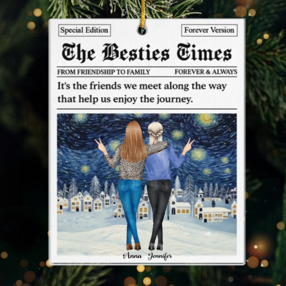 Custom Starry Night Acrylic Ornament - Personalized Best Friend Christmas Birthday Gifts For Women, Besties, Sisters, BFF - Merry Hearts Forever Friends