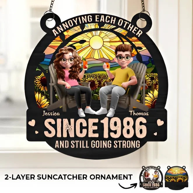 Custom Window Hanging Suncatcher Ornament - Personalized Anniversary Wedding Gifts For Husband And Wife, Him And Her - Built On Jokes, Sealed With A Kiss
