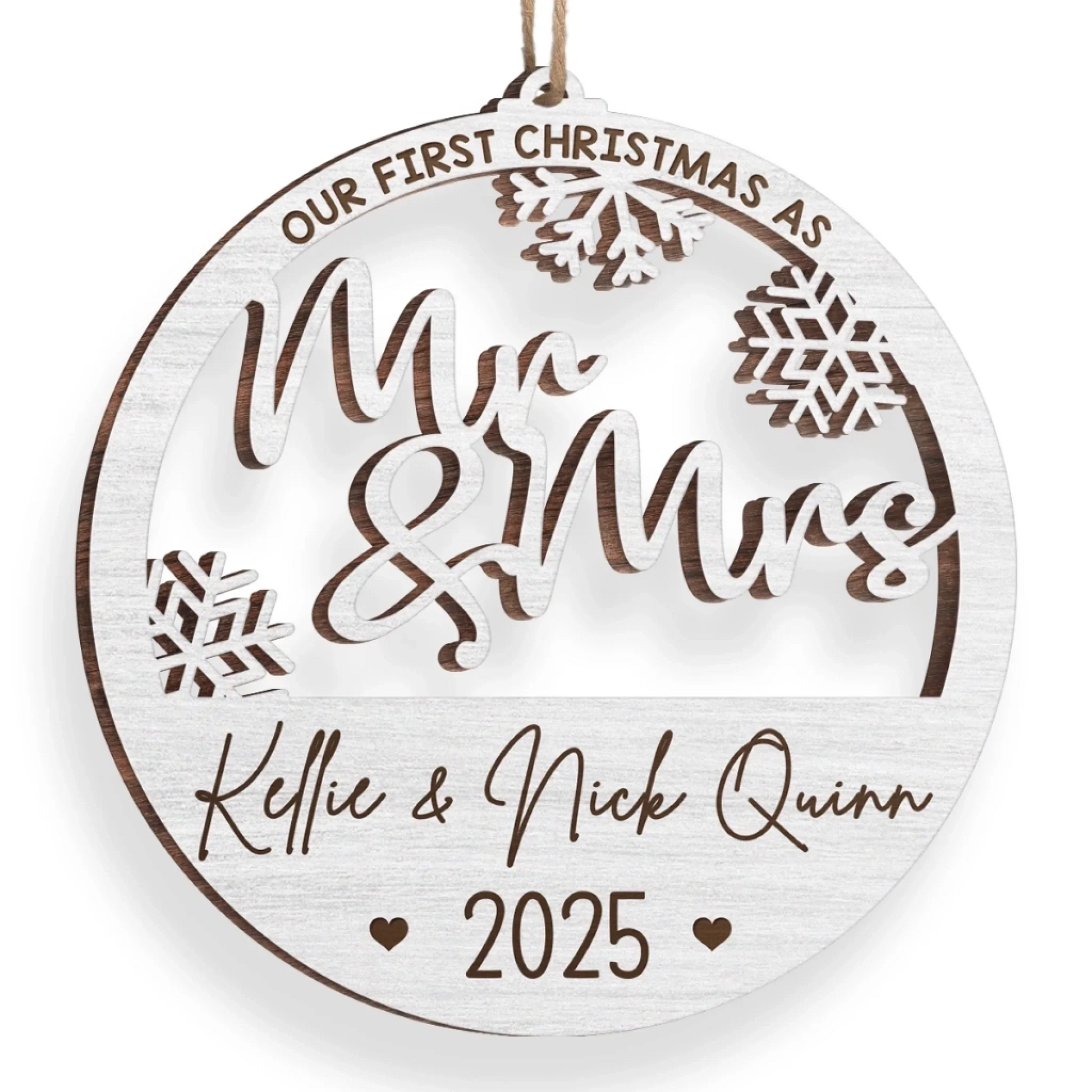 Custom Wood Ornament - Personalized Anniversary Christmas Wedding Gifts For Husband And Wife, Him And Her - Mr And Mrs Under The Tree