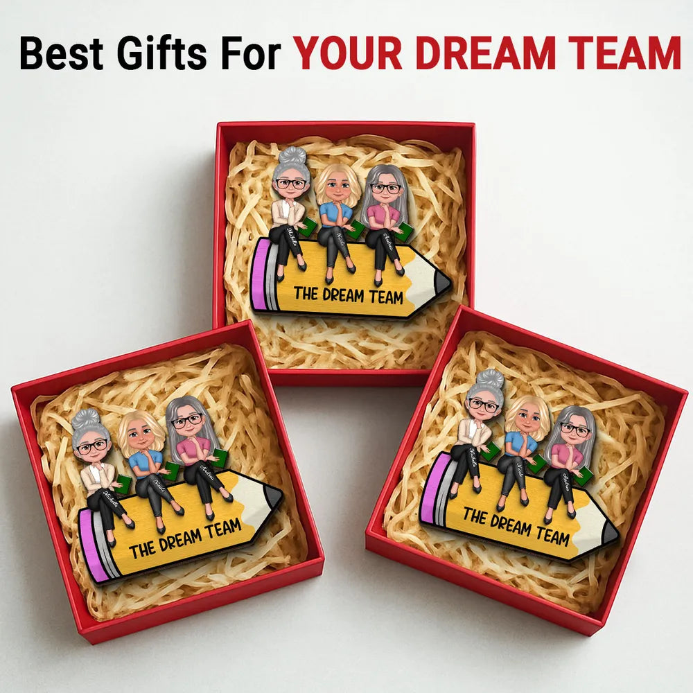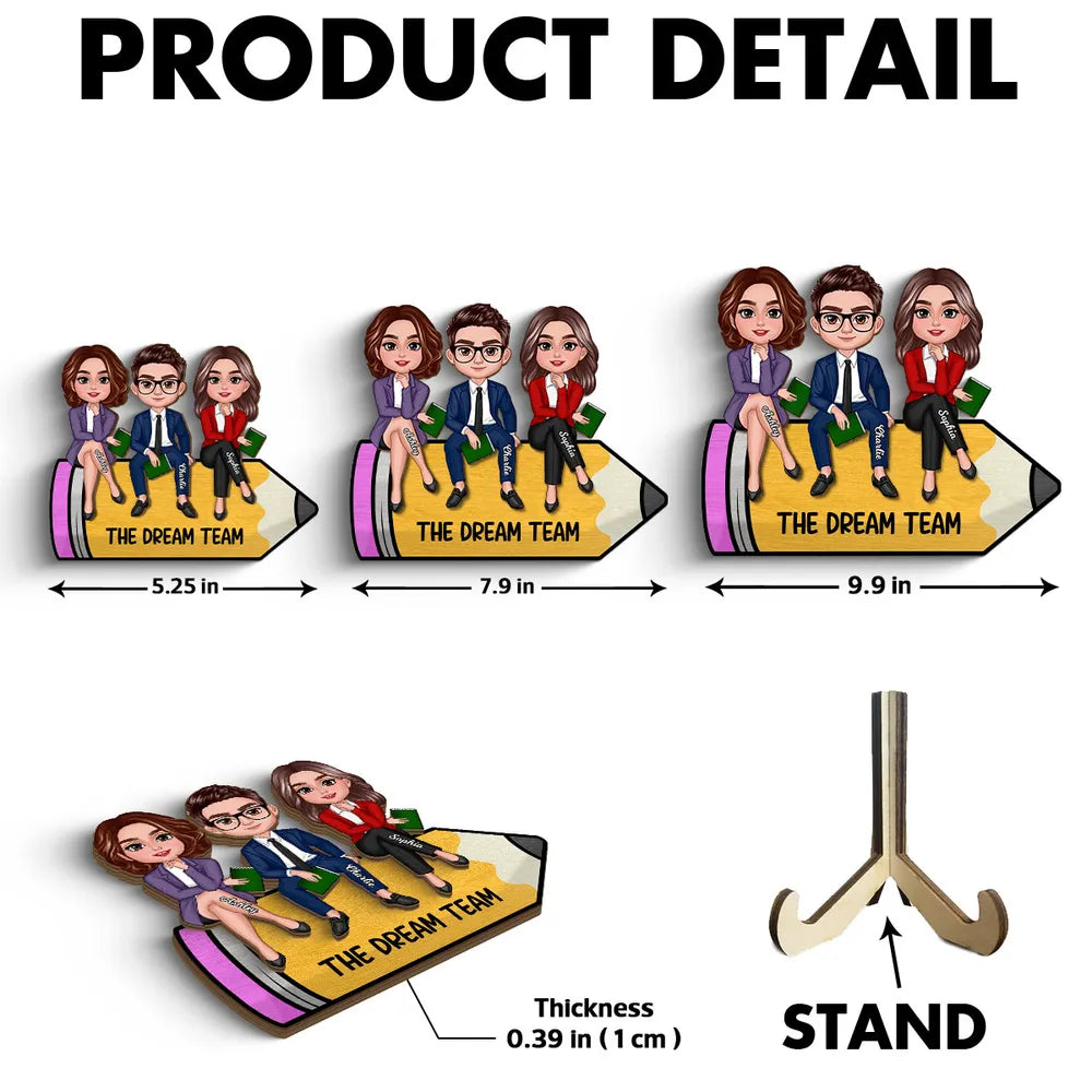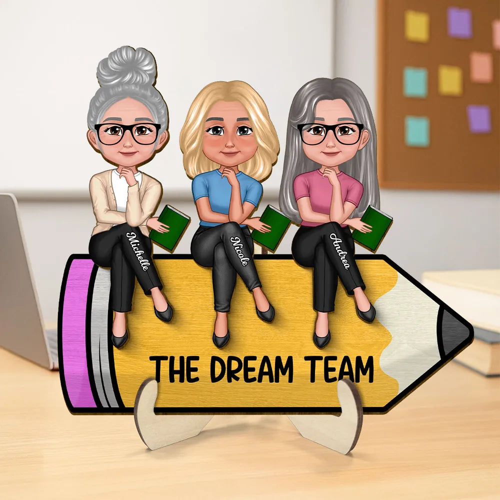 Doll Teacher Best Friends Colleagues Sitting On Pencil Personalized 2-Layer Wooden Plaque, Back To School Gift, Teacher Appreciation Gift, Classroom Decor