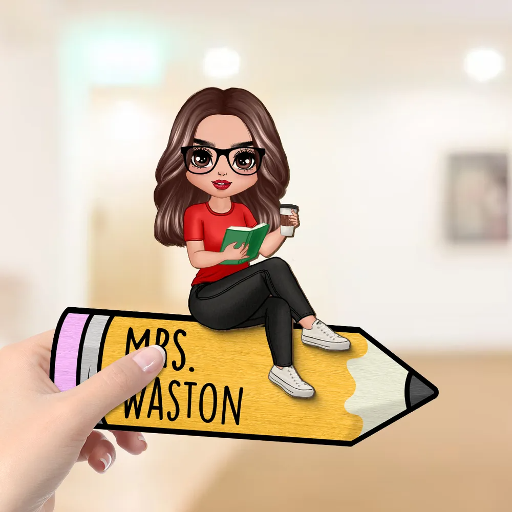 Doll Teacher Reading Books Personalized 2-Layer Wooden Plaque, Back To School Gift For Teacher, Teacher Appreciation Gift