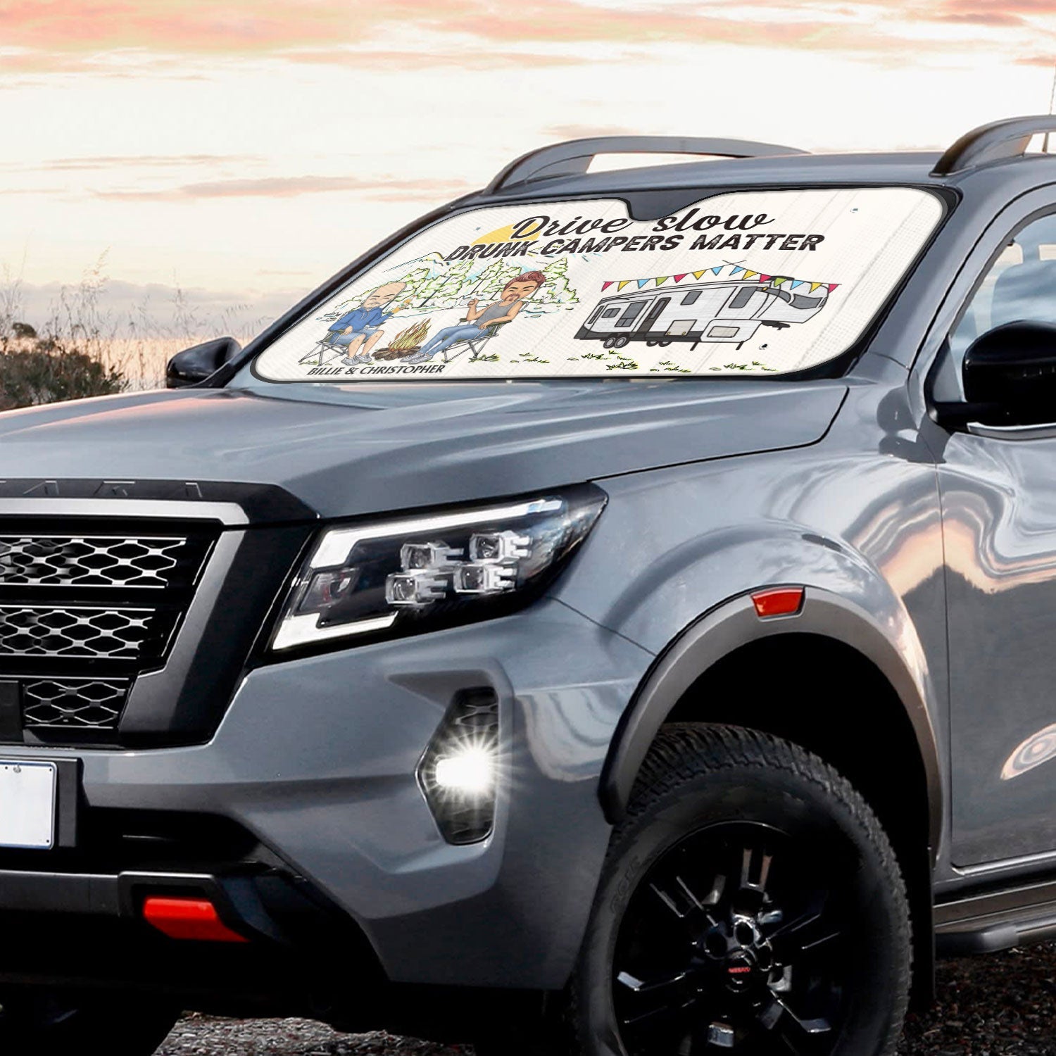 Drive Slow Drunk Camper Matter - Gift For Camping Lovers - Personalized Auto Sunshade