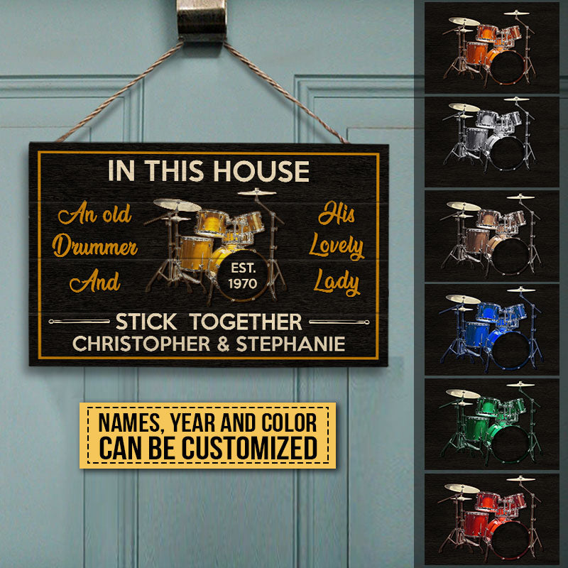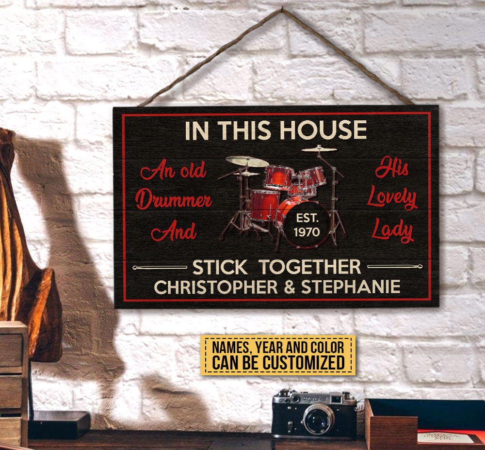 Drum Old Drummer Custom Wood Rectangle Sign, Gifts For Wedding, Anniversary, Birthday