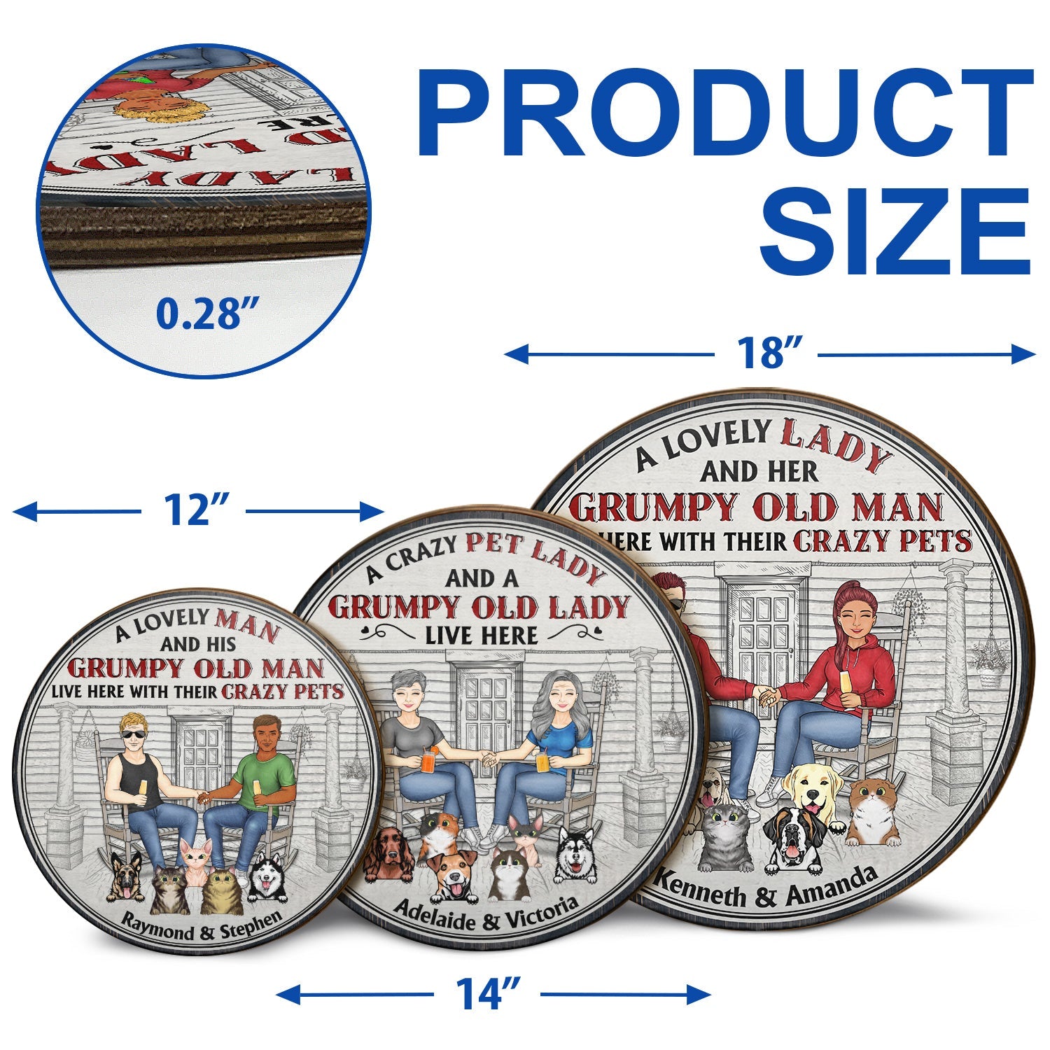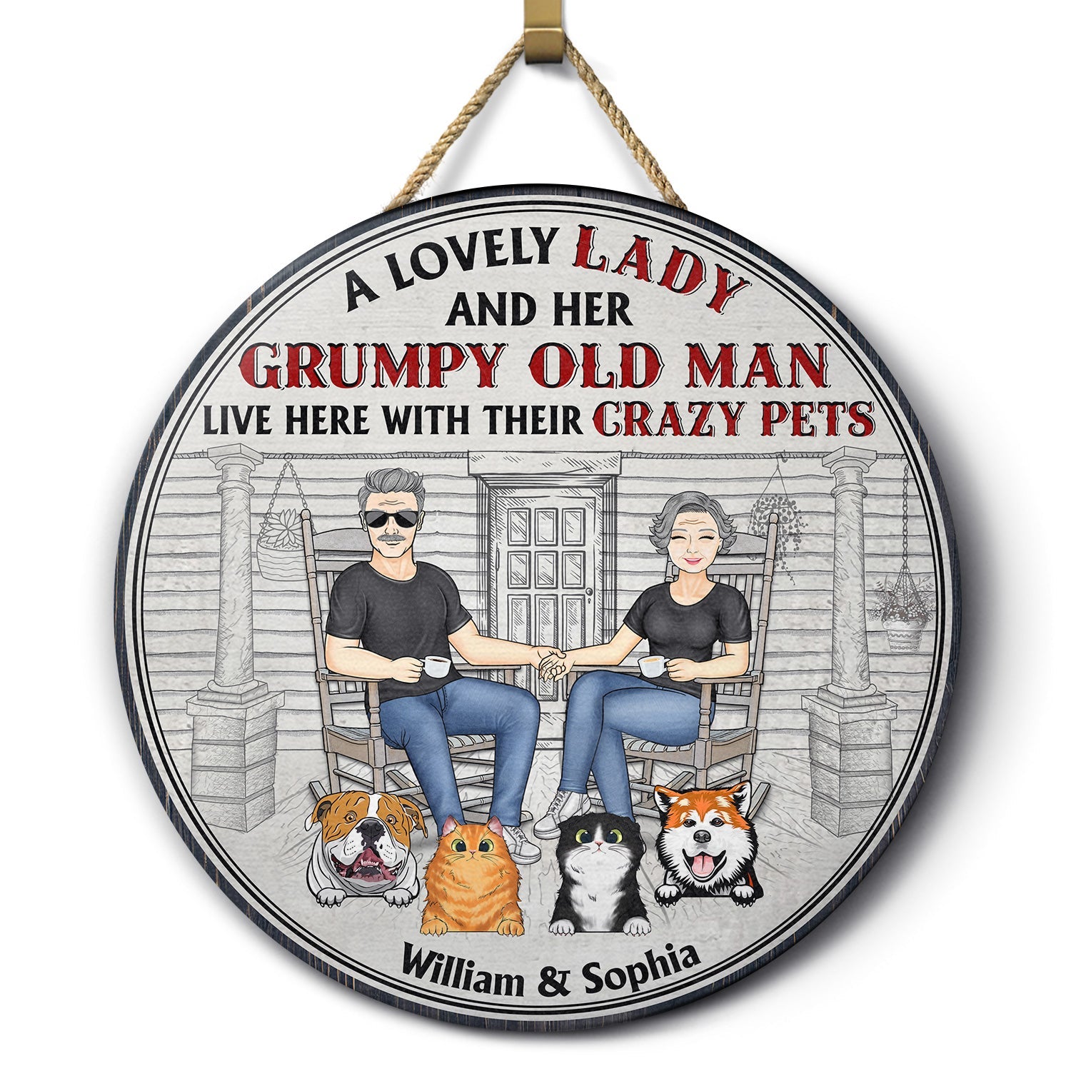 "A lovely lady and her grumpy old man live here with their crazy pets
