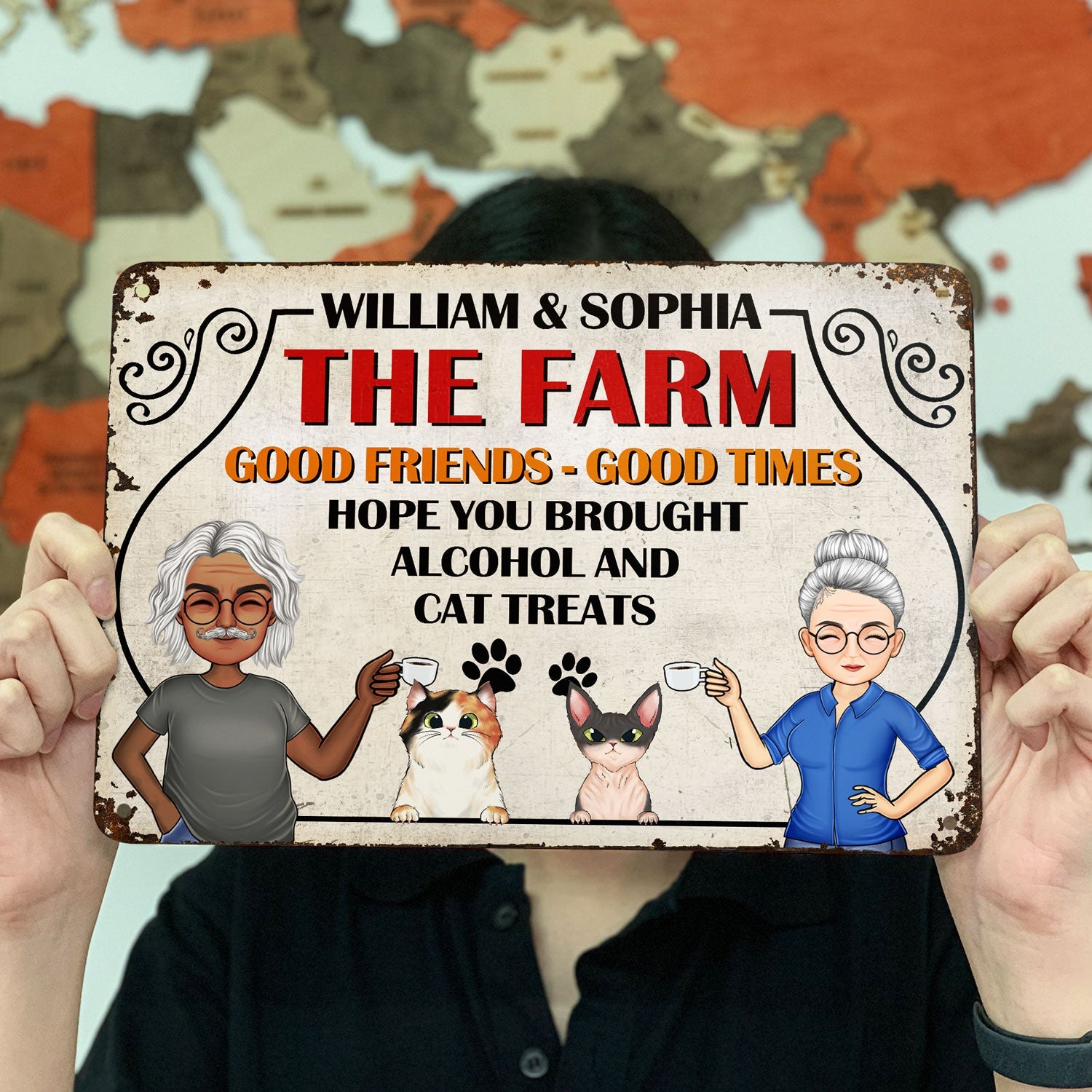 Family Couple Backyard Bar Hope You Brought Alcohol And Cat Treats - Outdoor Gift For Cat Lovers - Personalized Custom Classic Metal Signs