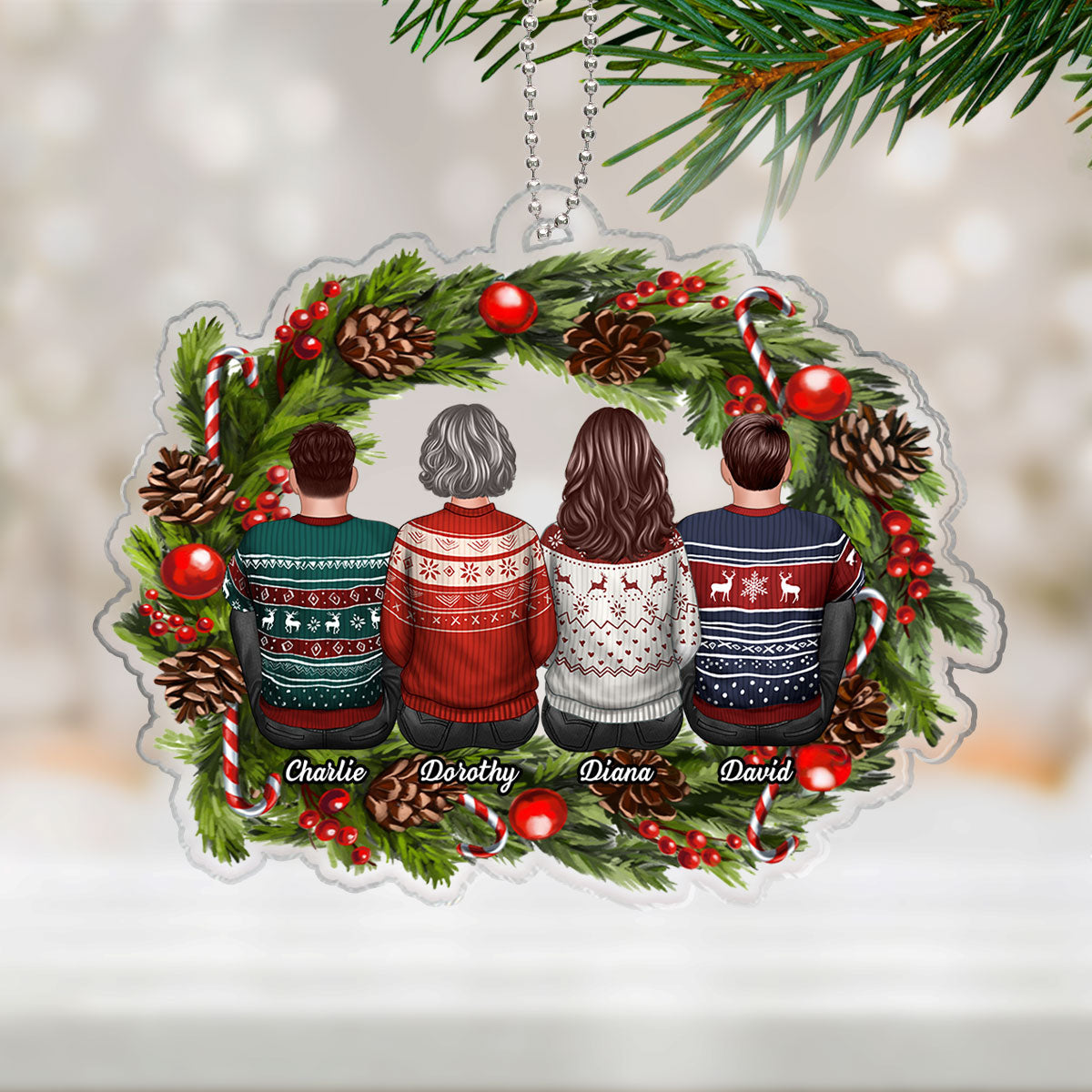 Family Sitting Back View Holly Branch Memorial Personalized Acrylic Ornament, Sympathy Gifts