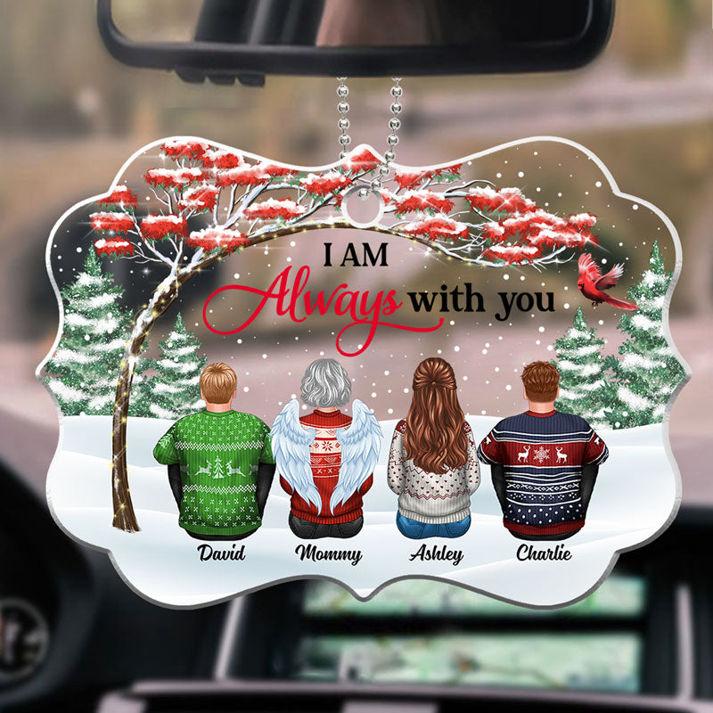 Family Sitting Red Tree Memorial Personalized Acrylic Ornament