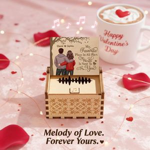 Capture the feeling of home being a person with this beautifully designed personalized wooden music box. Instantly drawing attention with its romantic back-view couple illustration and heartfelt message, this keepsake builds emotional connection through its gentle melody and meaningful design. Customized with names and a loving quote, it transforms a simple tune into a deeply personal reminder that your favorite place in the world is standing right beside you—making it a perfect Valentine’s Day, anniversary, or just-because gift.