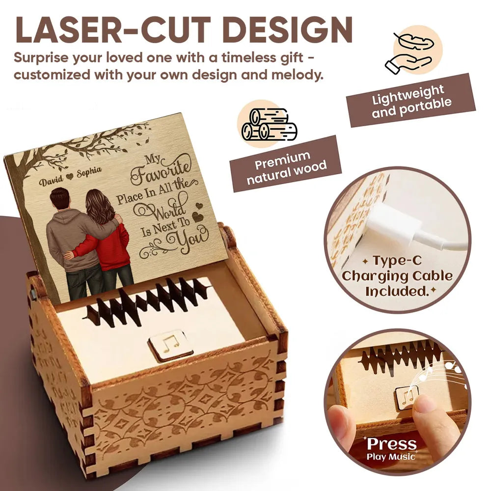 Favorite Place In The World Couple Standing Back View - Personalized Wooden Music Box - Valentine's Day Gift For Him, Gift For Her