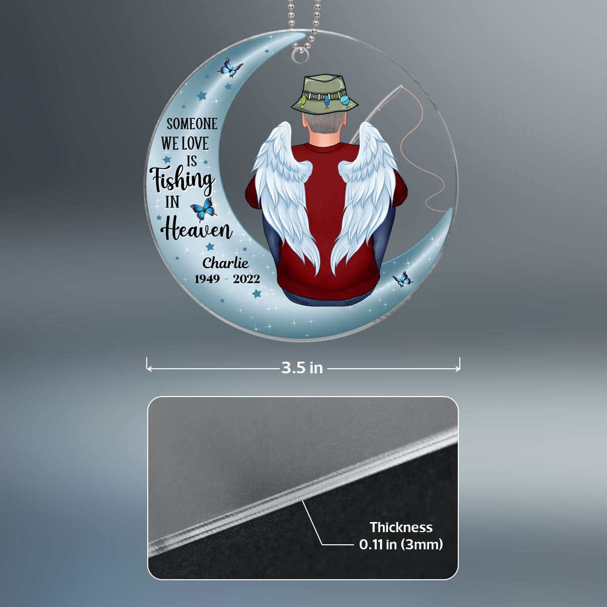 Fishing In Heaven Memorial Keepsake Moon Personalized Acrylic Ornament