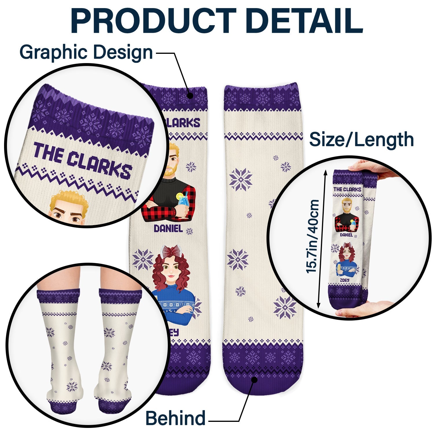 Flat Art - Christmas, Funny Gift For Family, Couple, Dad, Mom, Grandpa, Grandma - Personalized Socks