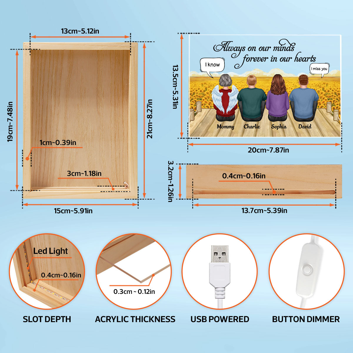 - Packaging: 1 x frame light box included button dimmer and USB-powered.