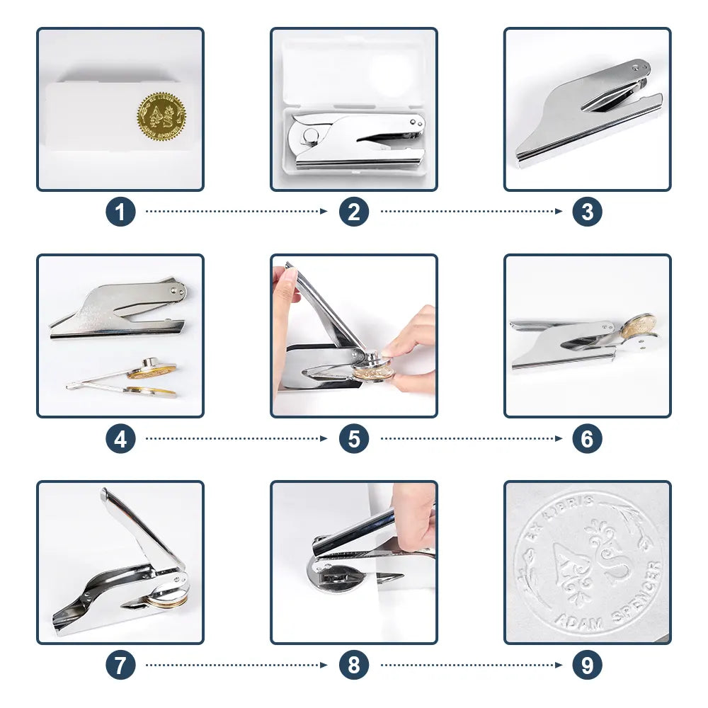 The book embosser showcases nine exquisite bee patterns, each representing nature and vitality. With designs featuring honeycomb, flowers, and bees, this embosser offers a unique artistic expression perfect for any book lover. Customize it with the recipient's name and special text for a truly one-of-a-kind piece.