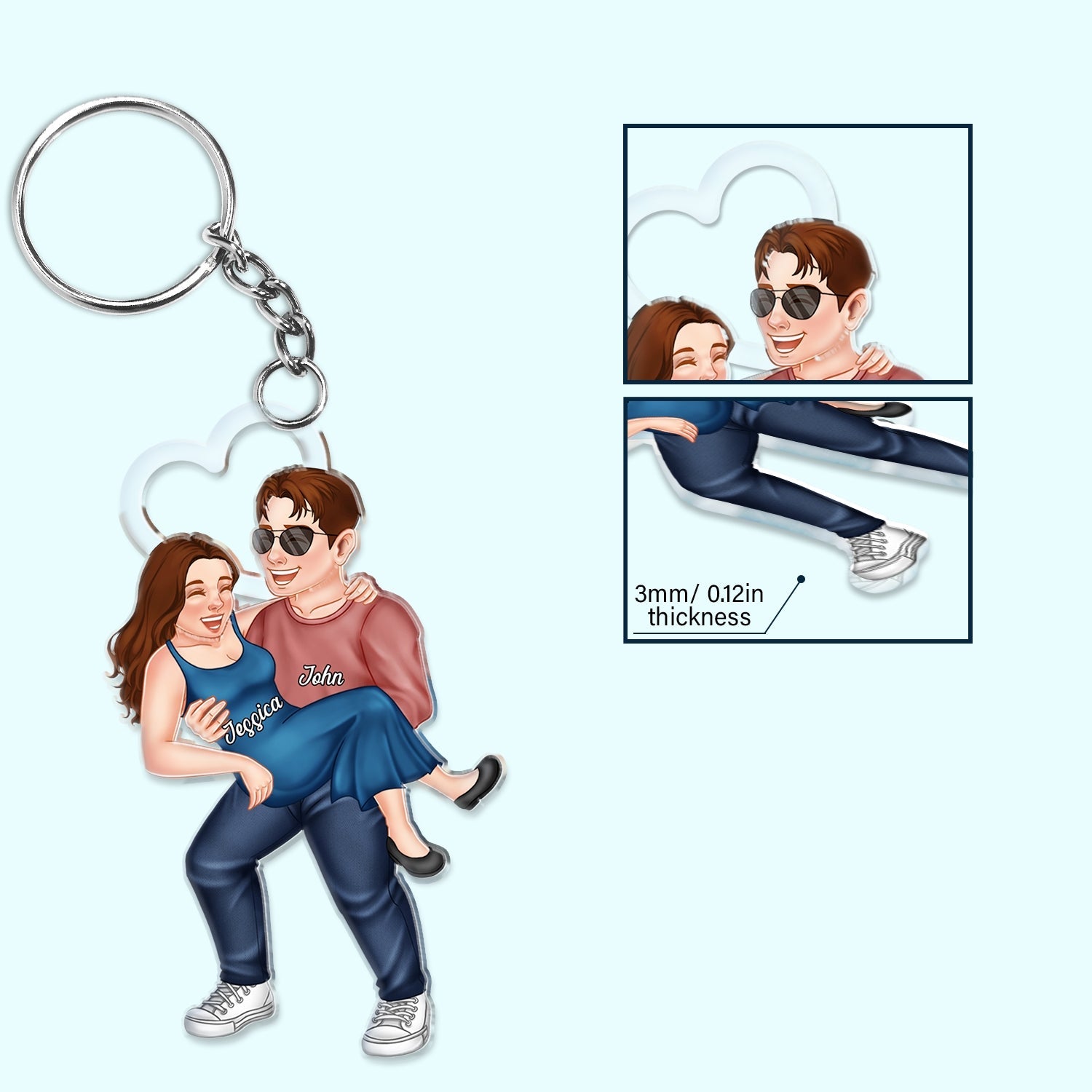 Funny Couple Carrying - Gift For Couples, Husband, Wife - Personalized Cutout Acrylic Keychain