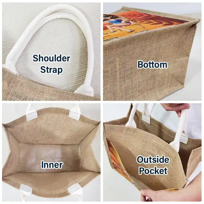 • High-quality material - With the bag body made from jute, the bag straps and outer pocket are made from Polyester, ensuring strong, eco-friendly, and long-lasting use.