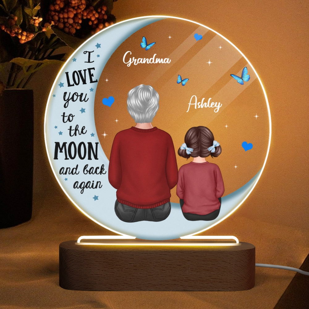 Grandma Grandkids Blue Moon Personalized Circle Plaque LED Night Light, Gift For Grandma
