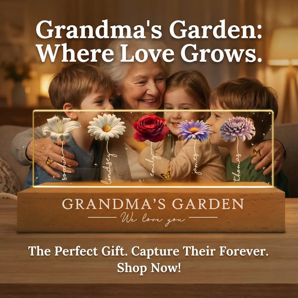 Grandma's Garden Beautiful 3D Effect Birth Flowers - Personalized Acrylic Block LED Night Light - Gift For Grandma