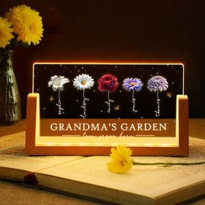 Grandma's Garden Beautiful 3D Effect Birth Flowers - Personalized Acrylic Plaque LED Night Light - Gift For Grandma