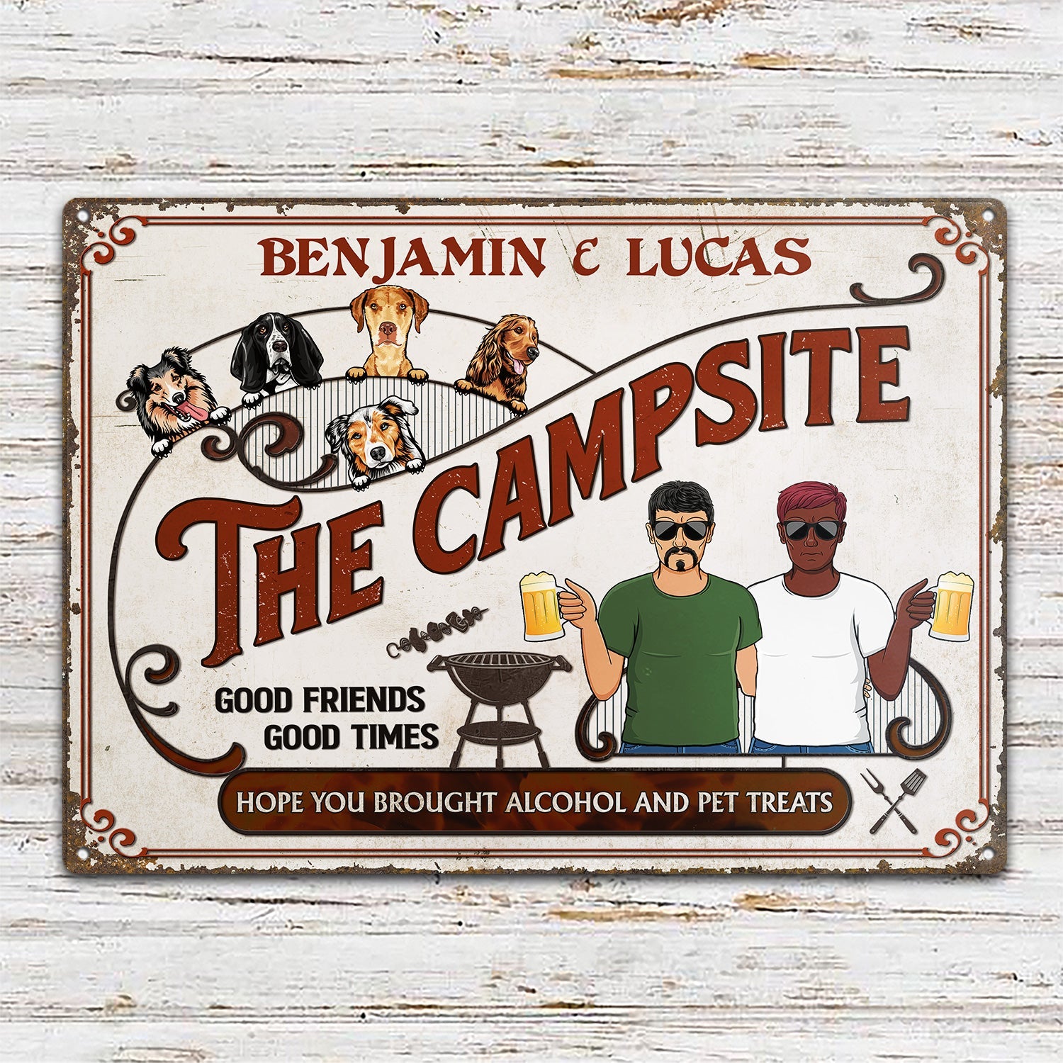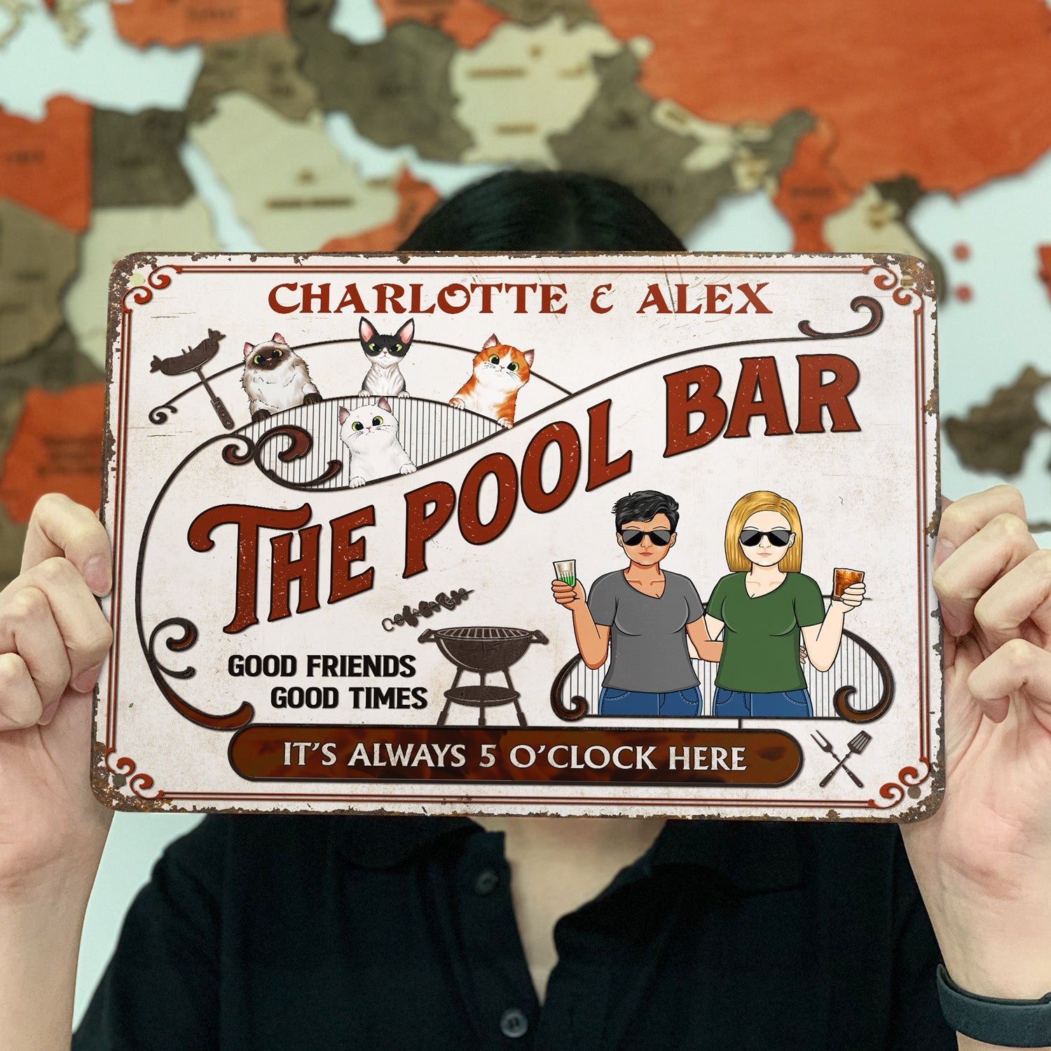 Grilling Proudly Serving Whatever You Bring - Cat, Dog Lover Couple Door Sign - Personalized Custom Classic Metal Signs