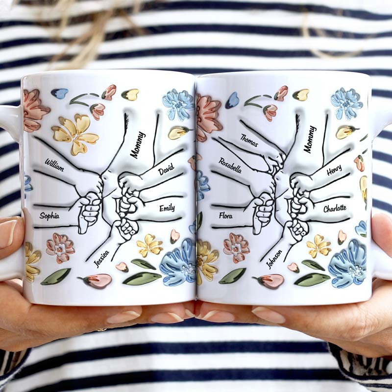 Hand In Hand, I Will Always Protect You 10 To 20 - Gift For Mom, Grandma - 3D Inflated Effect Printed Mug, Personalized White Edge-to-Edge Mug