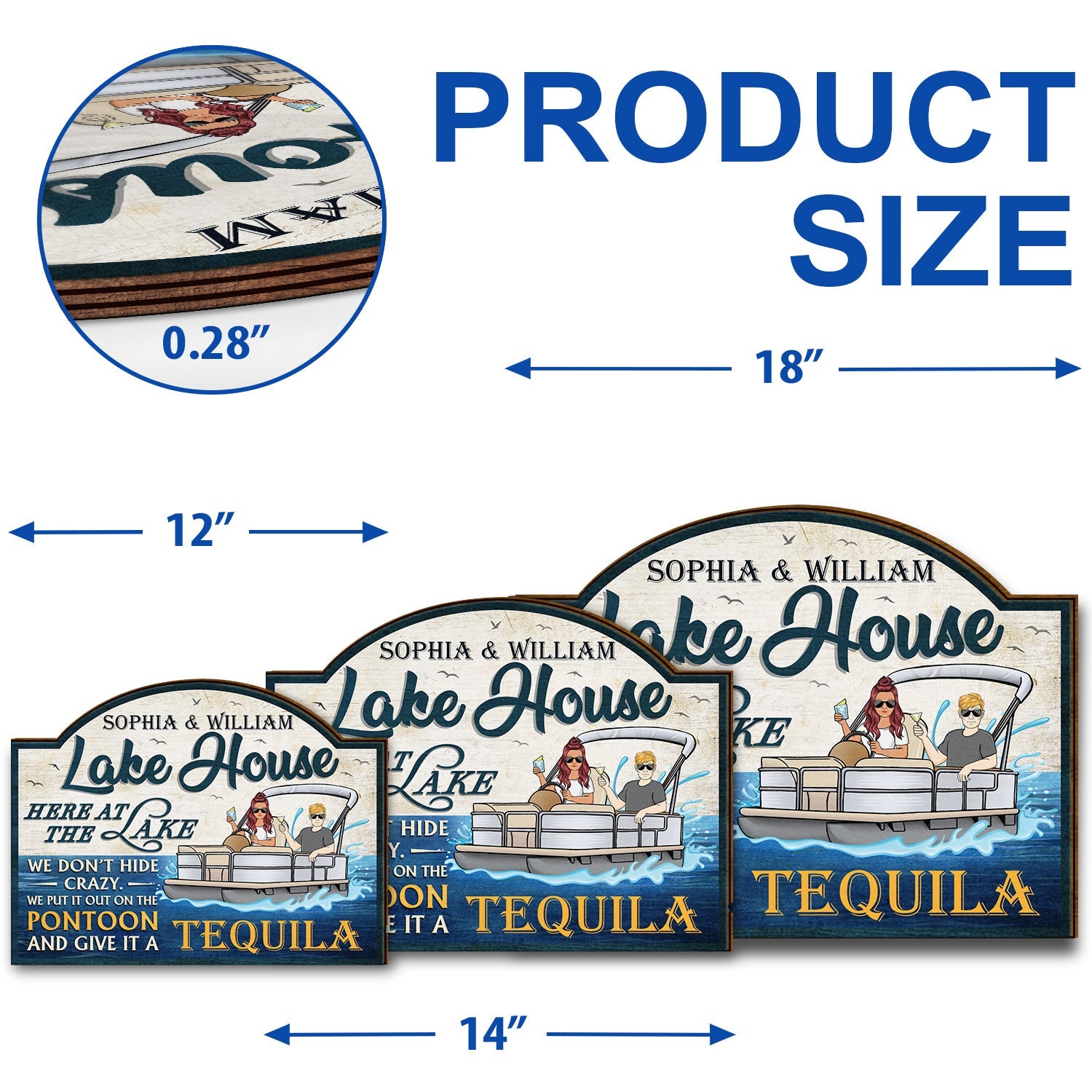 Here At The Lake We Don't Hide Crazy Pontoon - Home Decor, Backyard Decor, Lake House Sign, Gift For Her, Him, Family, Couples, Husband, Wife - Personalized Custom Shaped Wood Sign