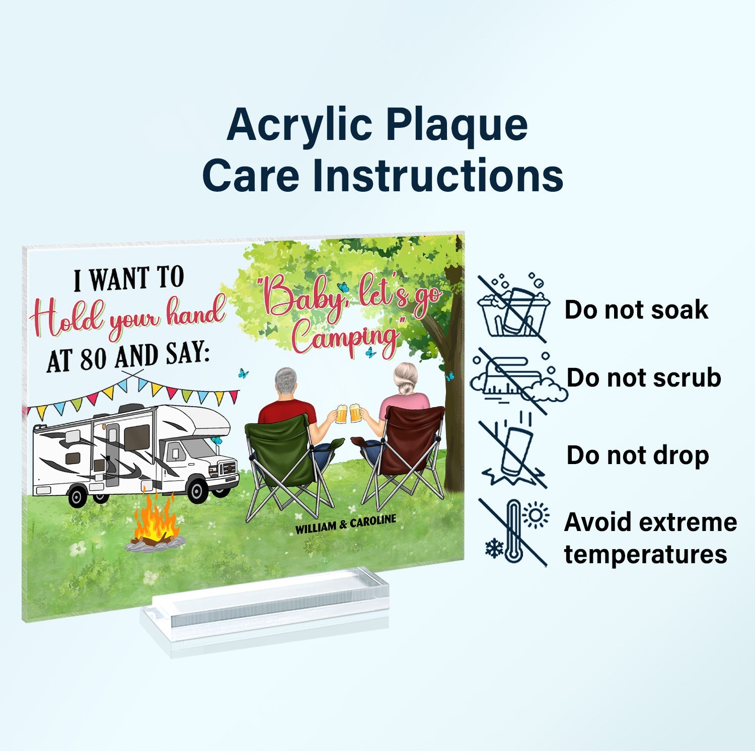 Hold Your Hand At 80 - Gift For Camping Couples - Personalized Horizontal Rectangle Acrylic Plaque