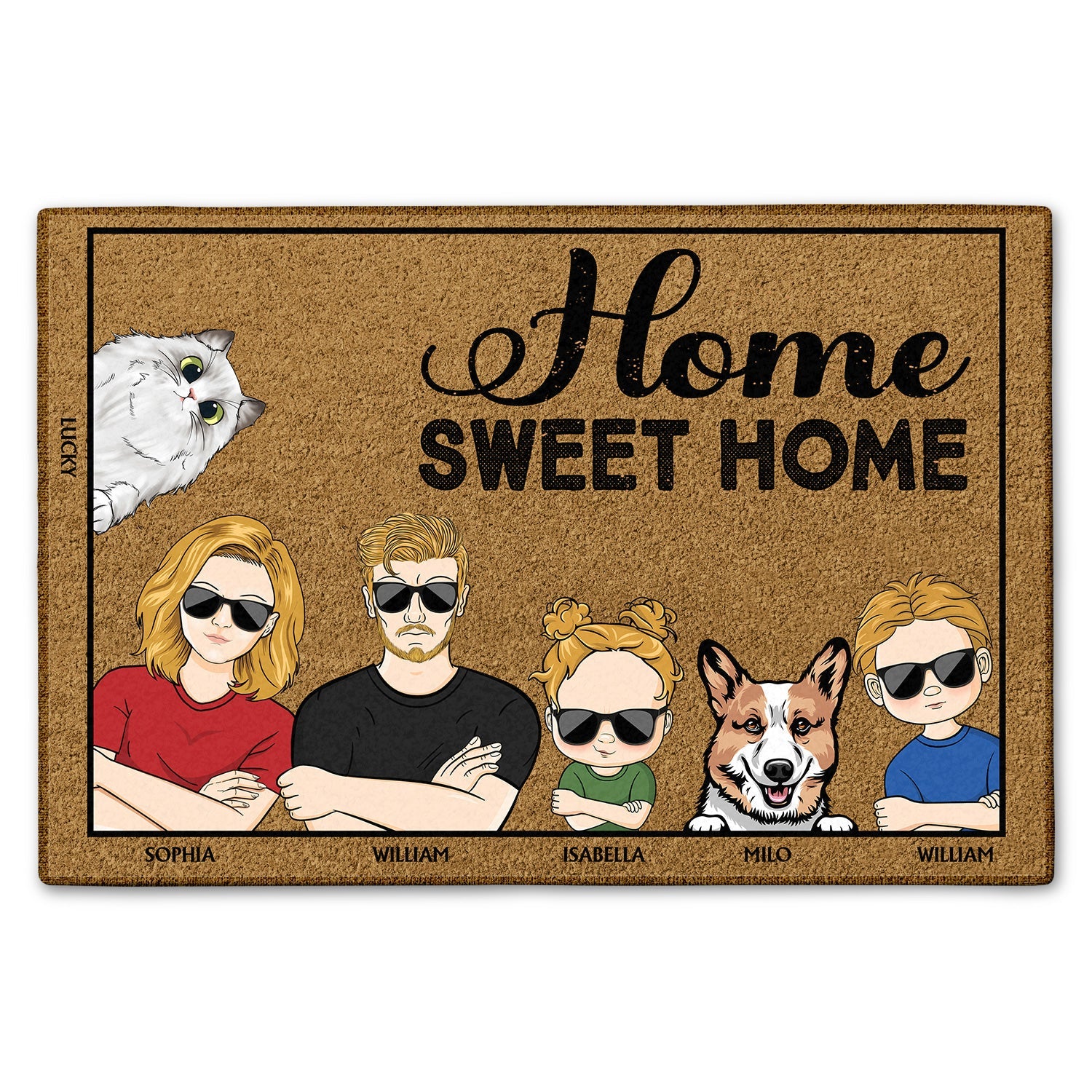 Home Sweet Home Couples Family Cats Dogs - Home Decor, Birthday, Housewarming Gift For Family - Personalized Custom Doormat