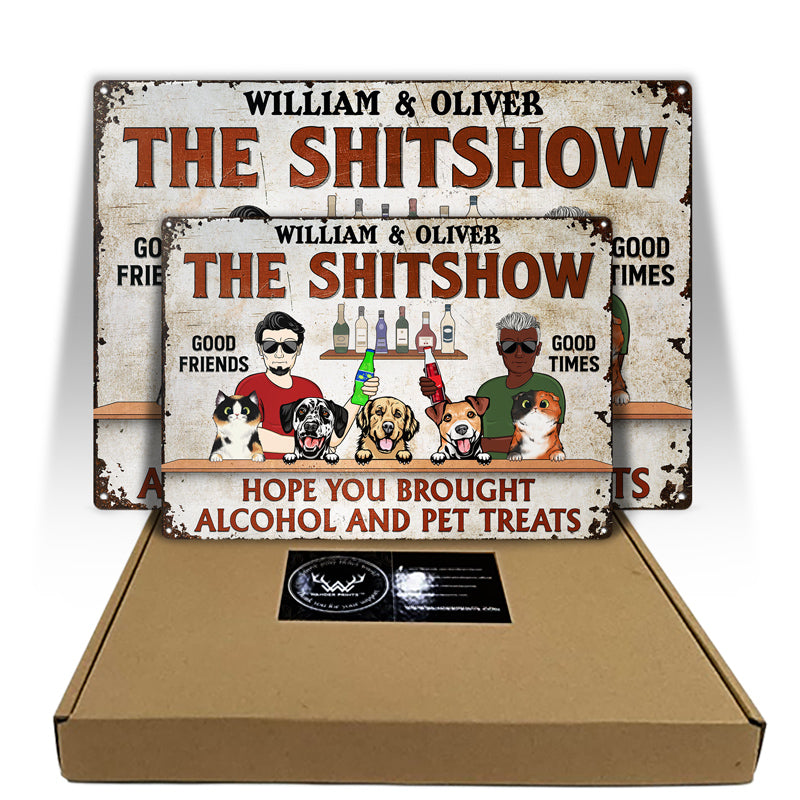 Hope You Brought Alcohol And Pet Treats Couple Husband Wife Cat Lovers Dog Lovers - Backyard Sign - Personalized Custom Classic Metal Signs