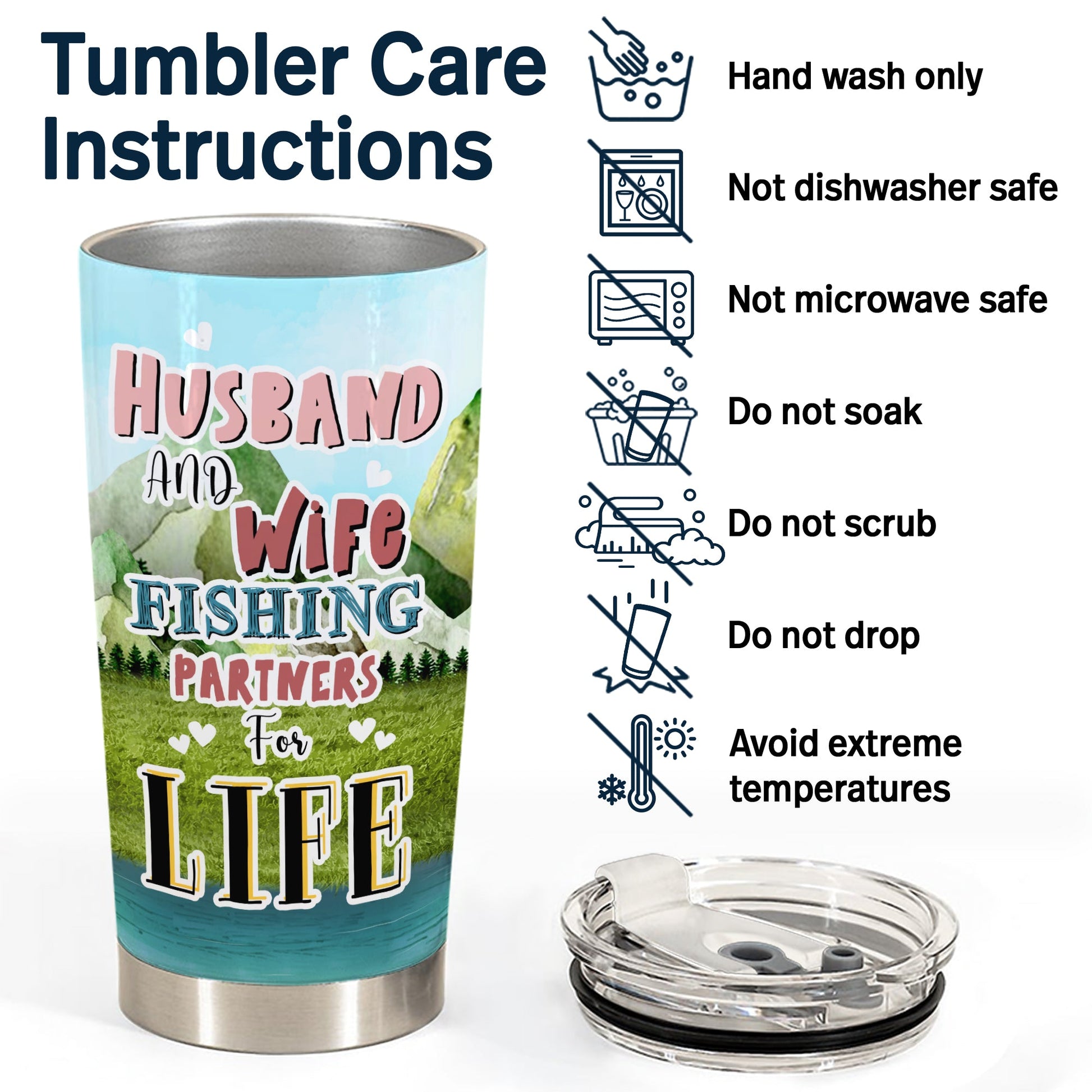Husband And Wife Fishing Partners For Life - Gift for Couples - Personalized Custom Tumbler