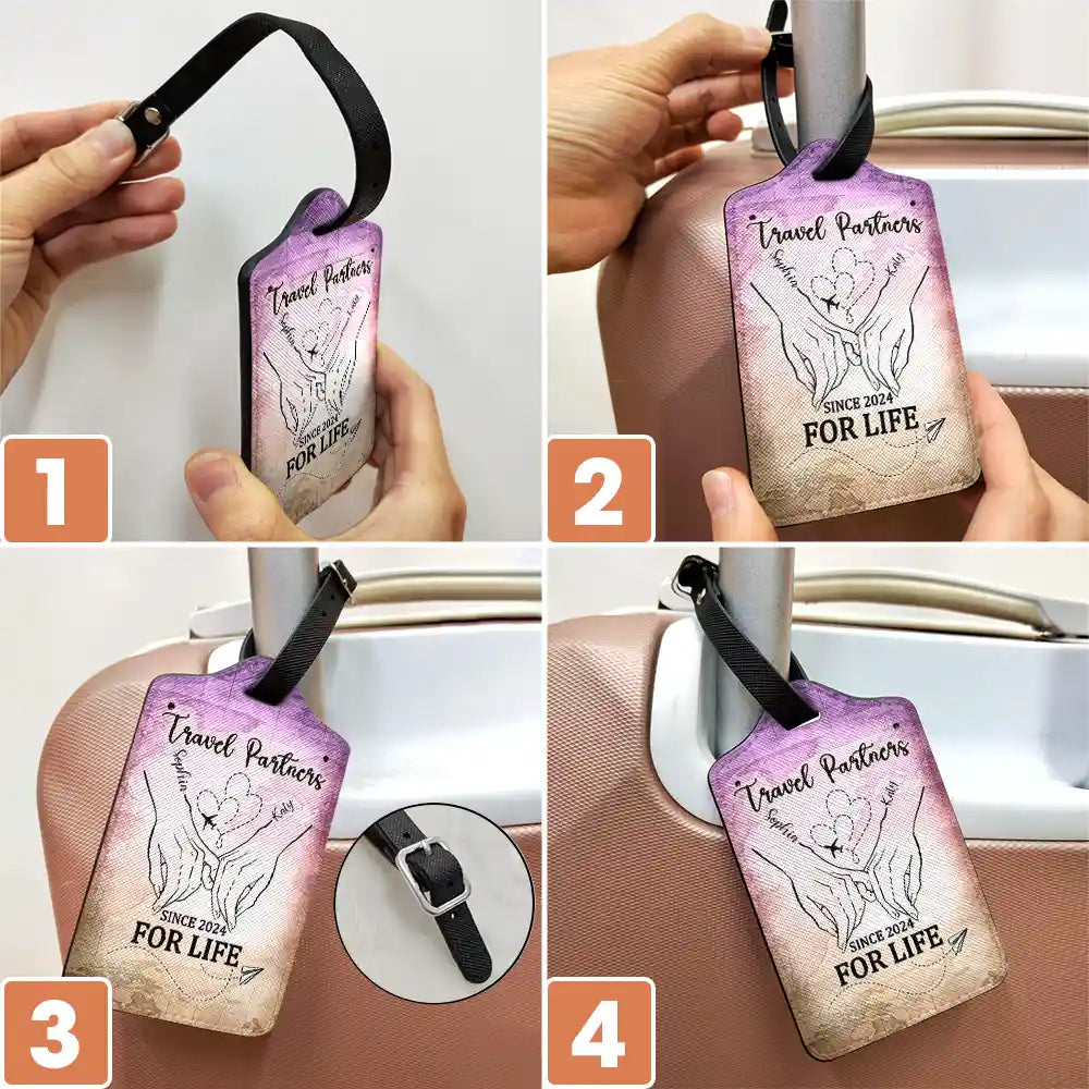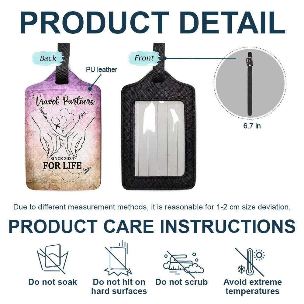 Crafted with high-quality materials, this luggage tag is not only durable but also stylish, featuring a personalized design that highlights your bond as travel partners for life. Attach it to your suitcase, backpack, or travel bag, and ensure your belongings are easily identifiable while adding a happy touch of personalization to your travels.