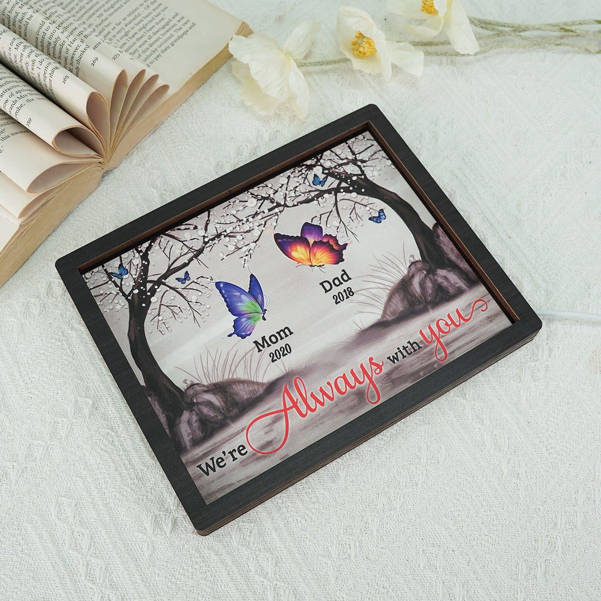 I Am Always With You Cardinals Butterflies Blossom Tree Memorial Personalized 2-Layered Wooden Plaque With LED